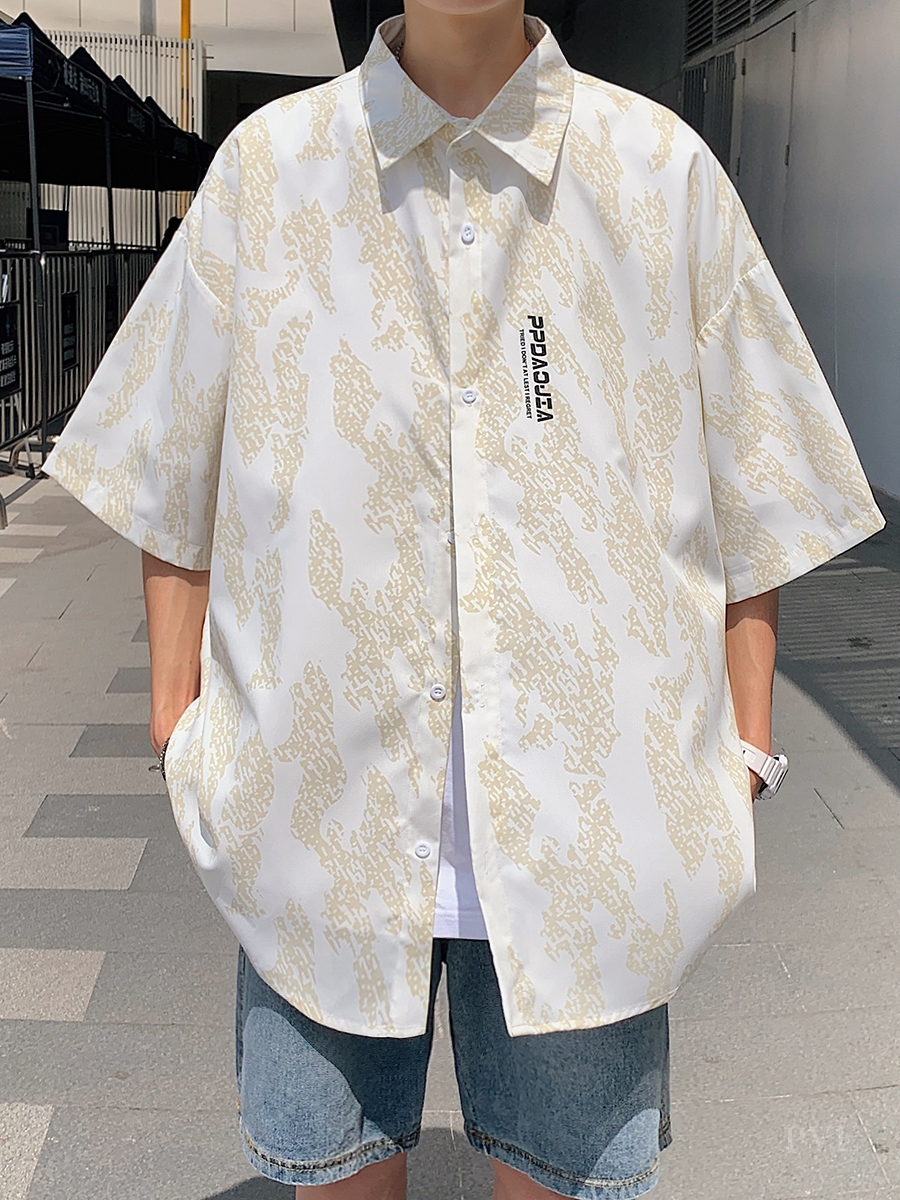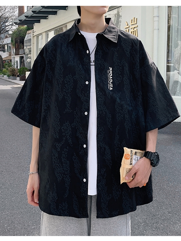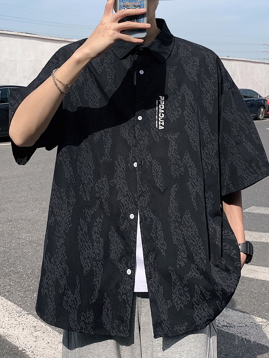 翻领的设计清爽简约,暗纹印花设计别致个性,尽显时尚街头潮流感。