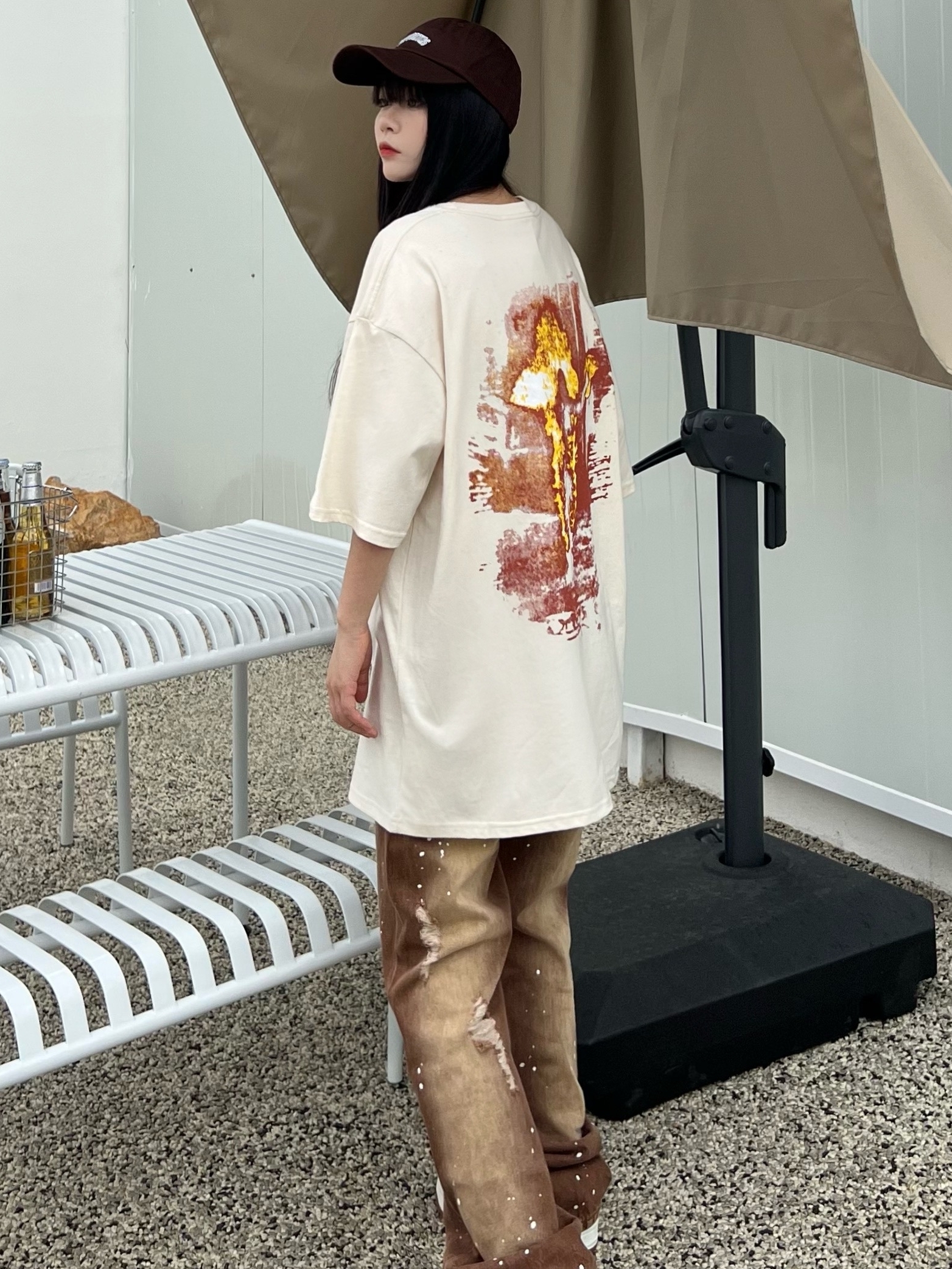 它最吸引我的地方就是后背着火的图案,让人感觉瞬间充满了力量,增添了整体的看点,随意搭配牛仔裤,就很有青春活力感。
