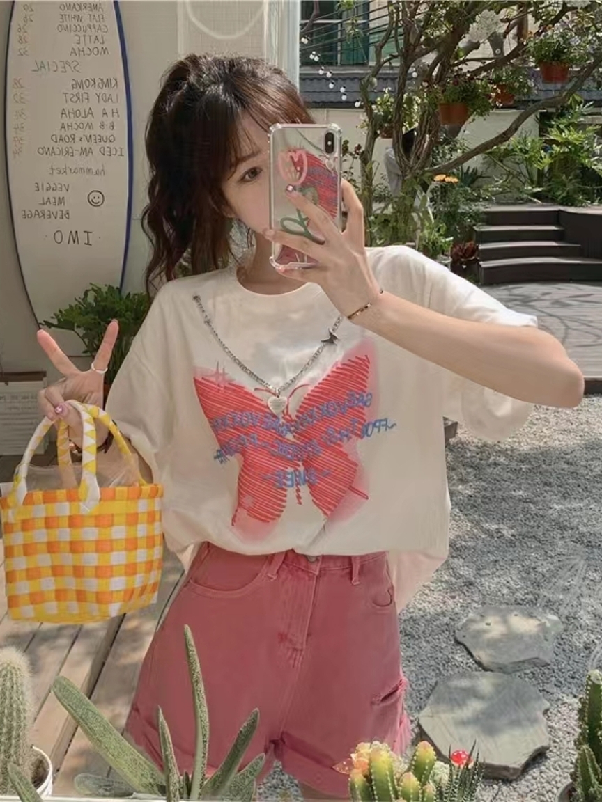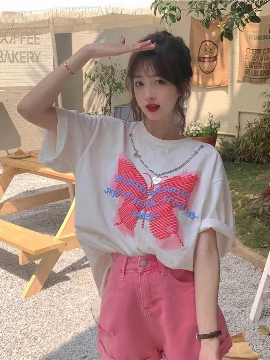 这款t恤是简约的风格,宽松的版型,时尚百搭,胸前的字母印花,很有个性,搭配牛仔裤或者短裤都很好看。
