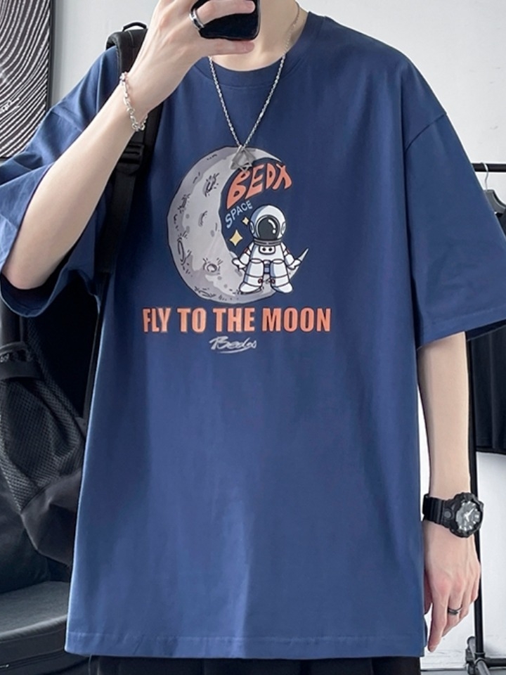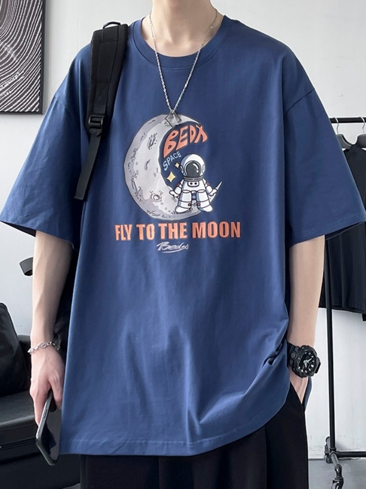 前幅位置以个性的行走宇航员印花抢眼装饰,独特的图案符合时下潮流青年的时尚品味,上身尽显别样潮人气质。