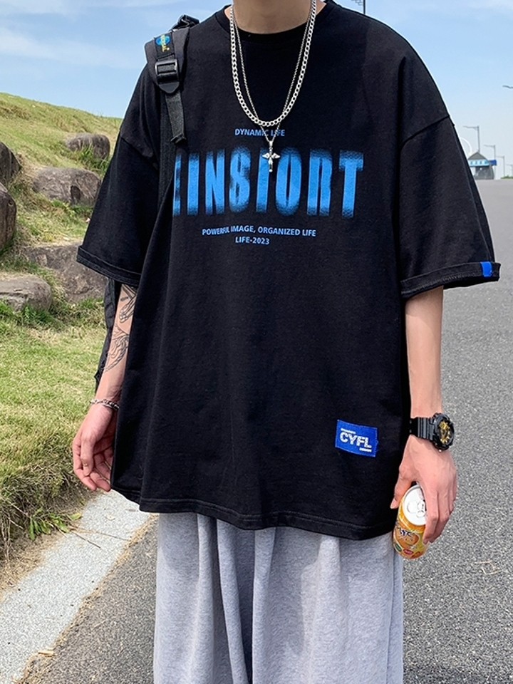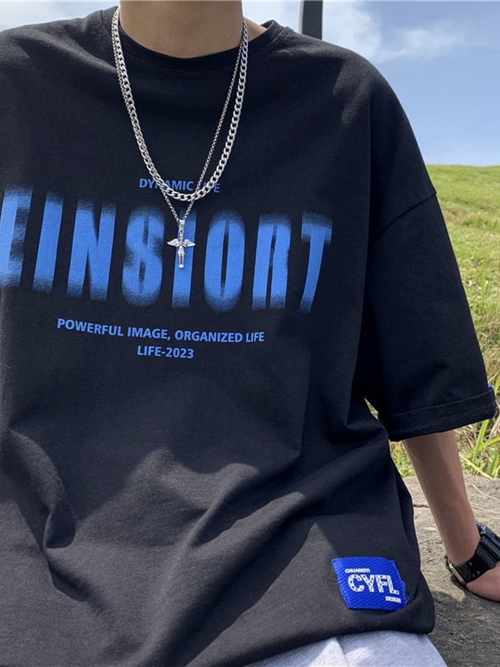 这款t恤是简约的风格,宽松的版型,时尚百搭,胸前的字母印花,很有个性,搭配牛仔裤或者短裤都很好看。