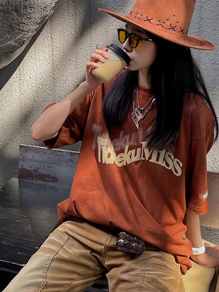 这款t恤是简约的风格,宽松的版型,时尚百搭,胸前的字母印花,很有个性,搭配牛仔裤或者短裤都很好看。