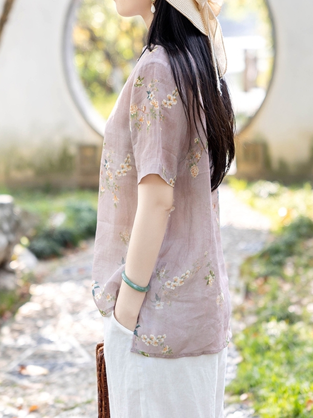 衣服上的印花也挺好看的,是我喜欢的花色,穿上很有文艺范!衣服做工精细,细节做的比较好,简单的搭配一条白色的阔腿裤就很好看。