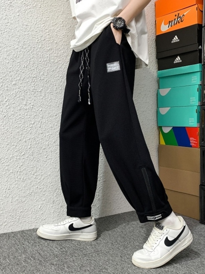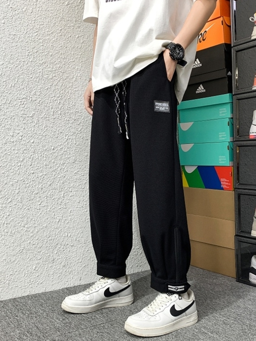 此款休闲九分裤,穿着舒适透气。宽松的版型,束脚的款式,九分裤的长度,完美的搭配在一起,修身舒适有型。