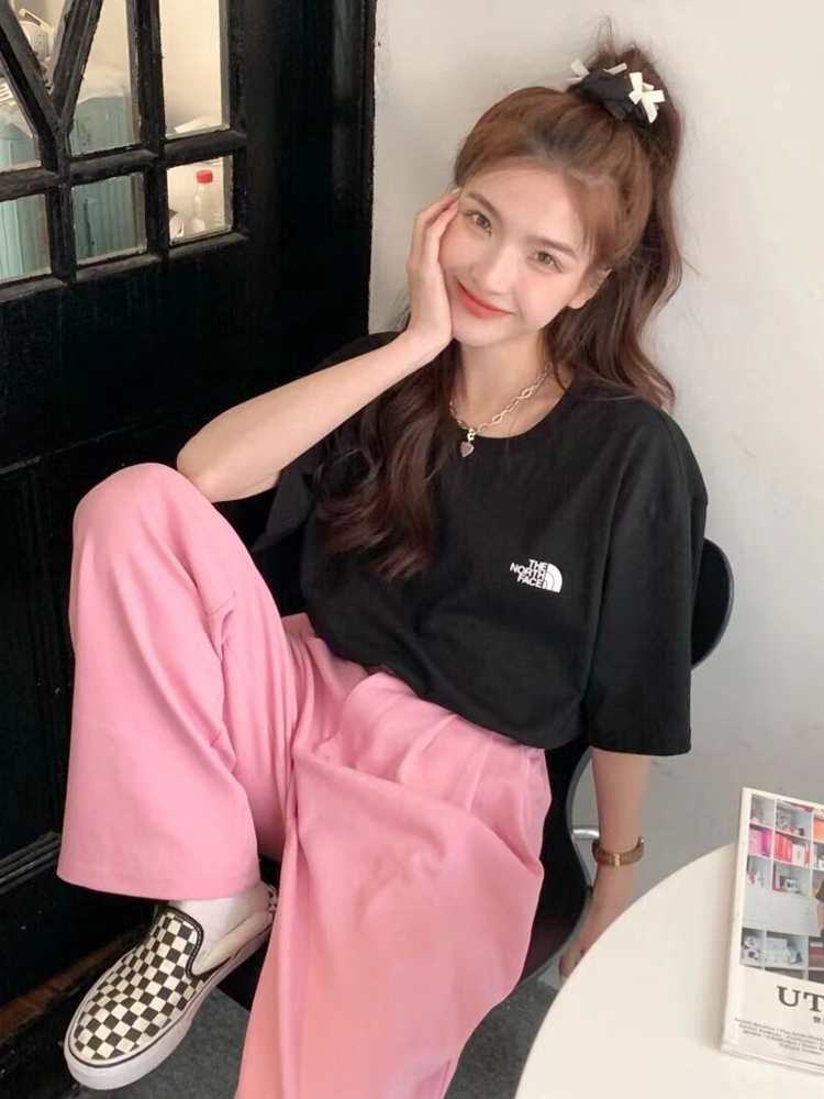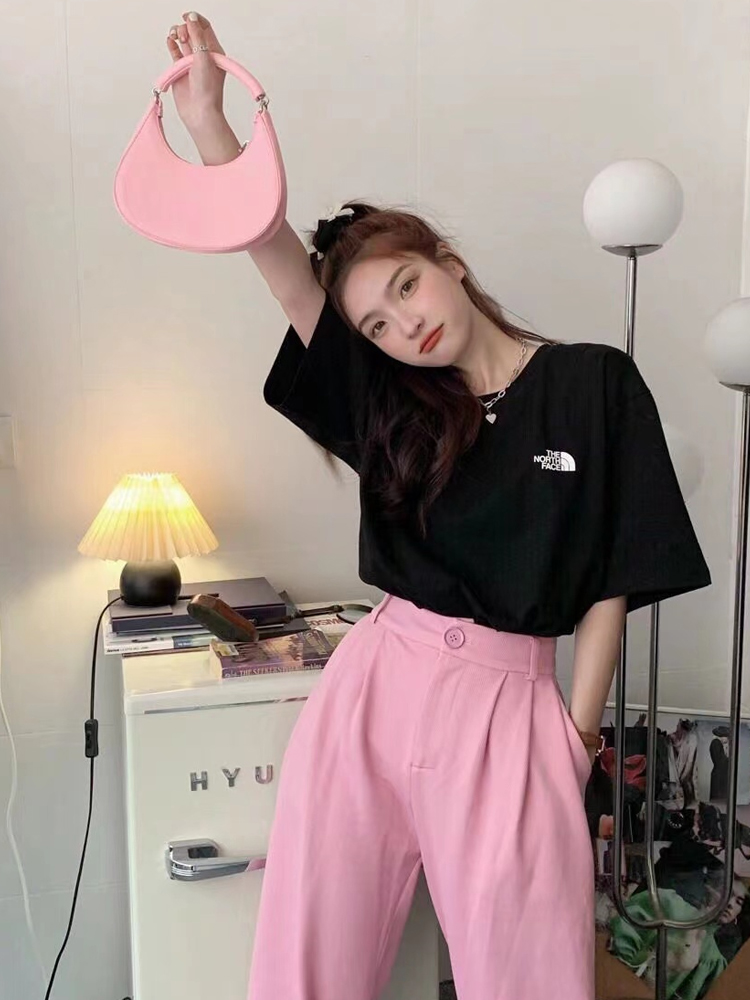 这款t恤是简约的风格,宽松的版型,时尚百搭,胸前的字母印花,很有个性,搭配牛仔裤或者短裤都很好看。