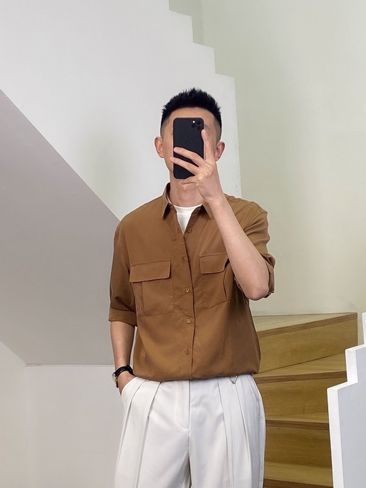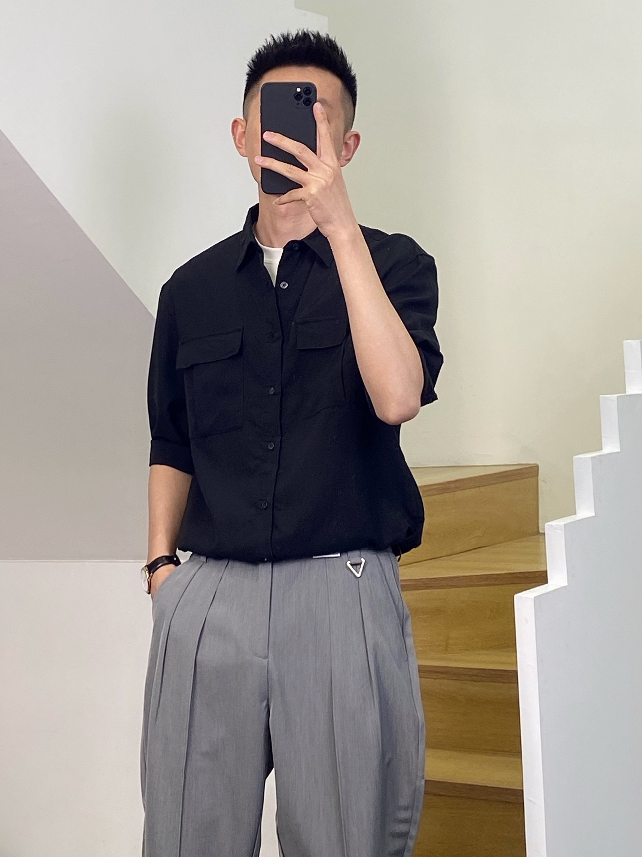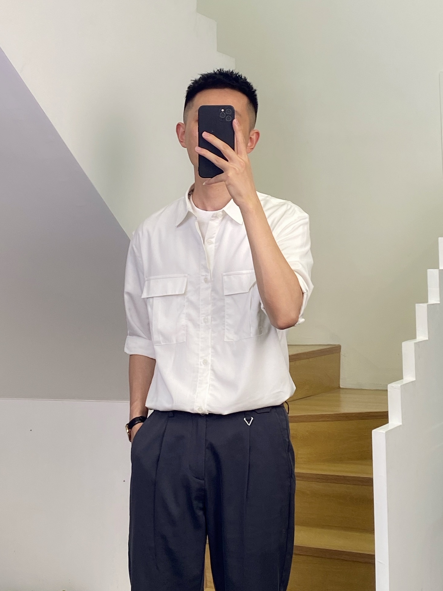 七分袖衬衫是每个男人的必备品。无论是作为休闲装还是商务装,都适合简单的七分袖衬衫。大气衬衫领子~~