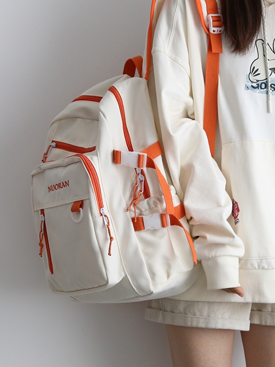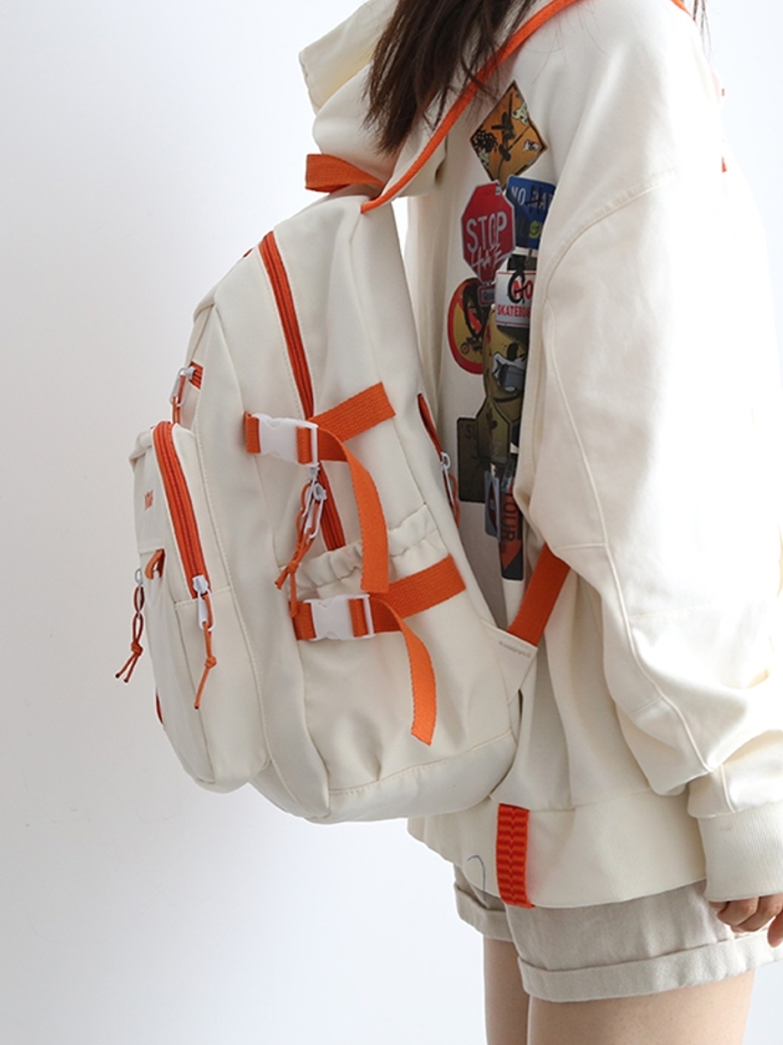 撞色的颜色搭配,让这款双肩包很有视觉效果和设计感,让包包变得更时尚。大容量多口袋设计,用起来很舒心。
