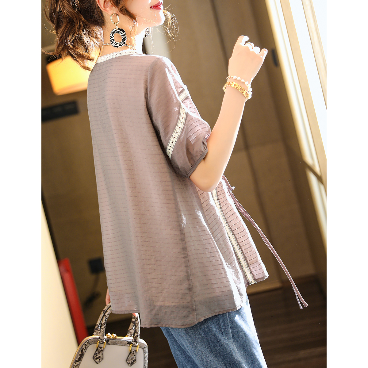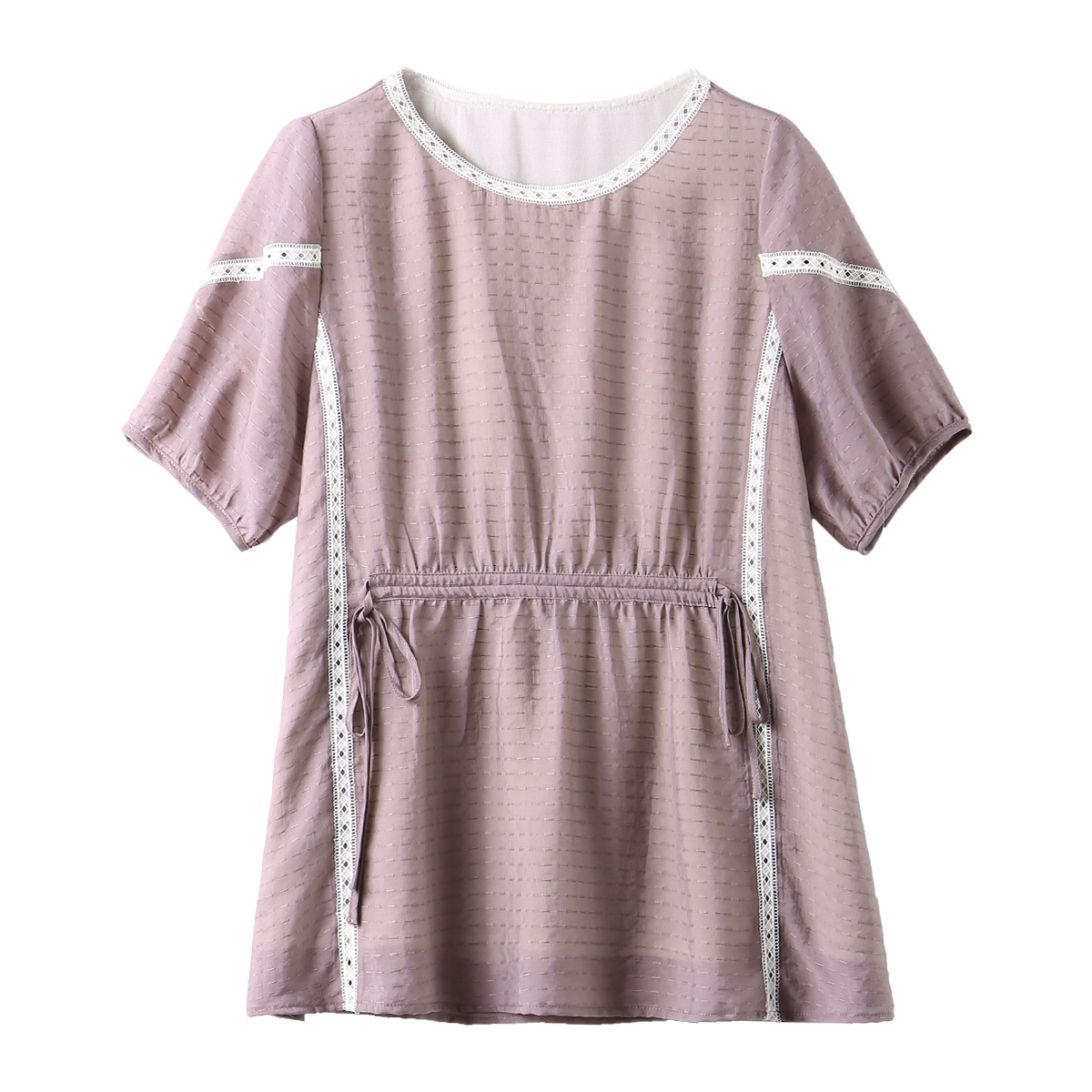 圆领设计,修饰脖颈线条。收腰设计,凸显纤细腰身。天丝面料,穿着舒适透气。