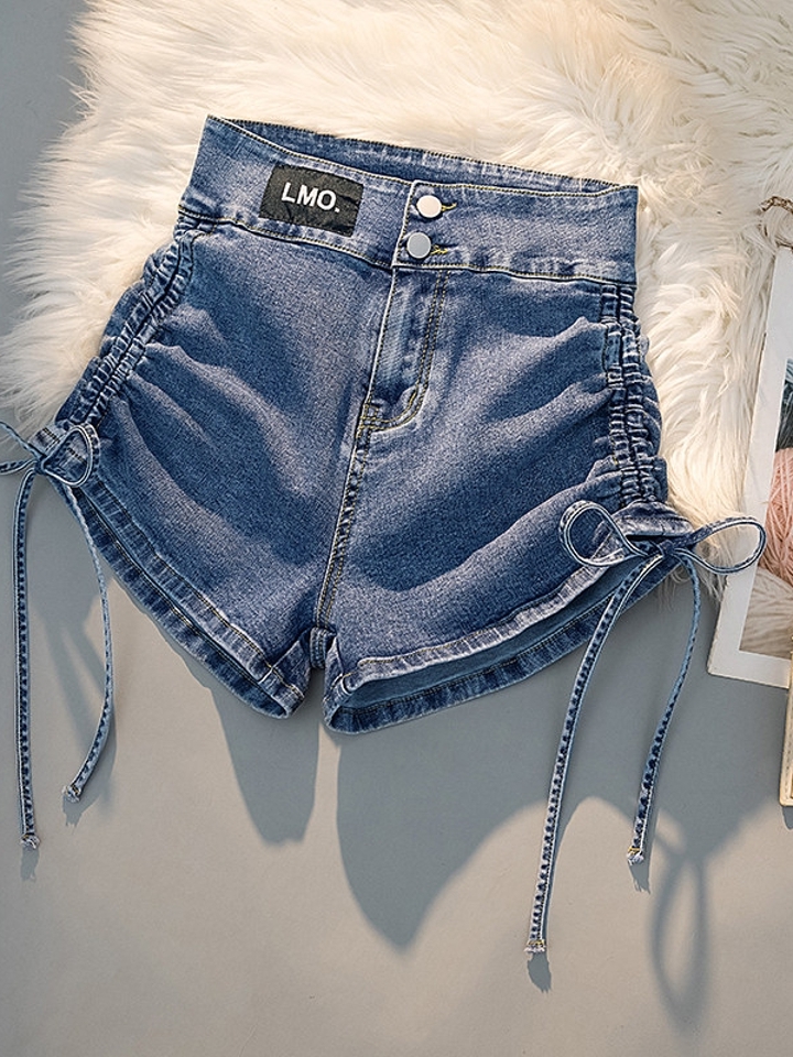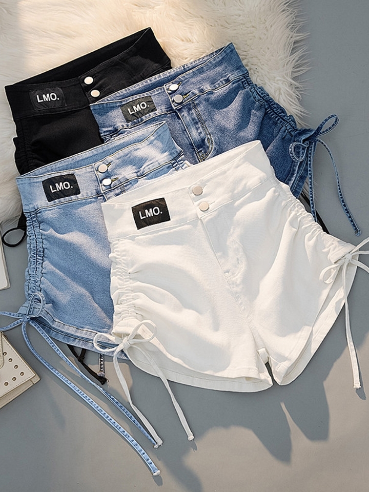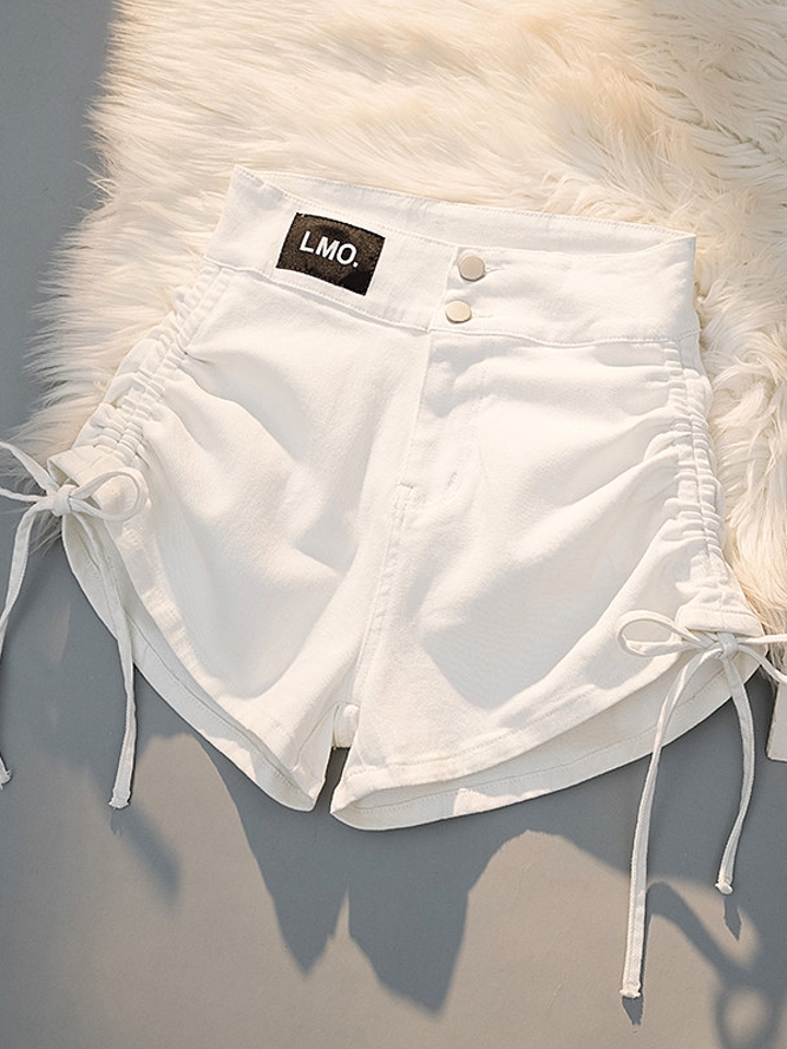 高腰的设计,更能拉长腿部的线条,甜美的系带边,率性又不失可爱,简单一条短裤就能轻松的演绎出时尚的精彩。