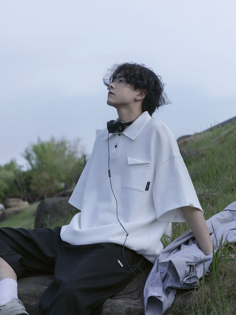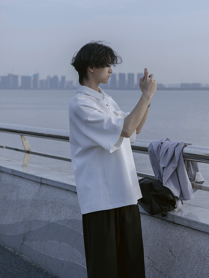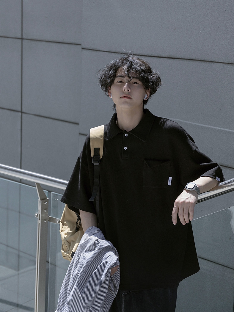 这件polo衫我觉得不错的~版型挺阳光的,是那种日系的风格,哈哈,可以搭配休闲裤,短牛仔裙都挺好看的,颜色的也比较百搭