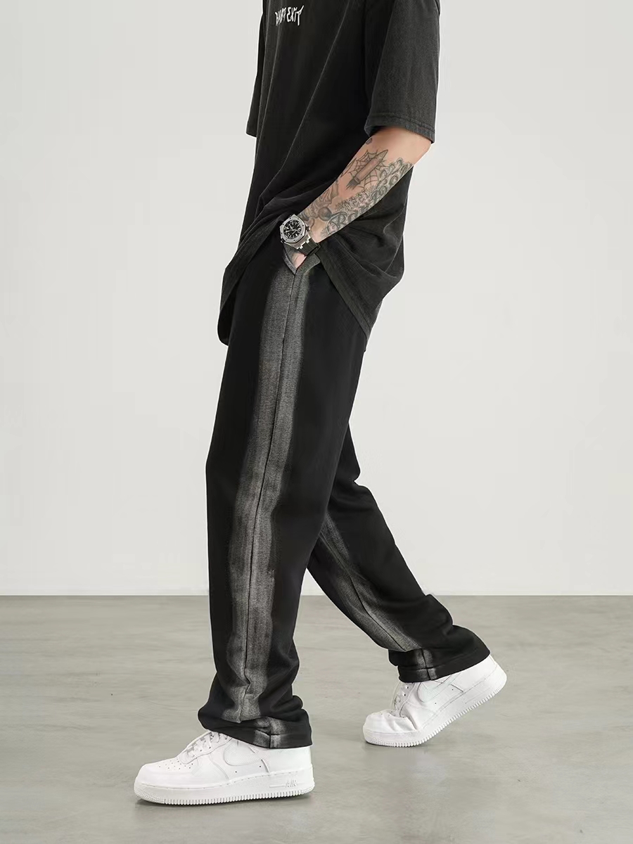 很有性格的一款牛仔裤,选用的牛仔面料表面经过水洗做旧工艺处理,带着淡淡复古怀旧的气息,看起来颇为复古。