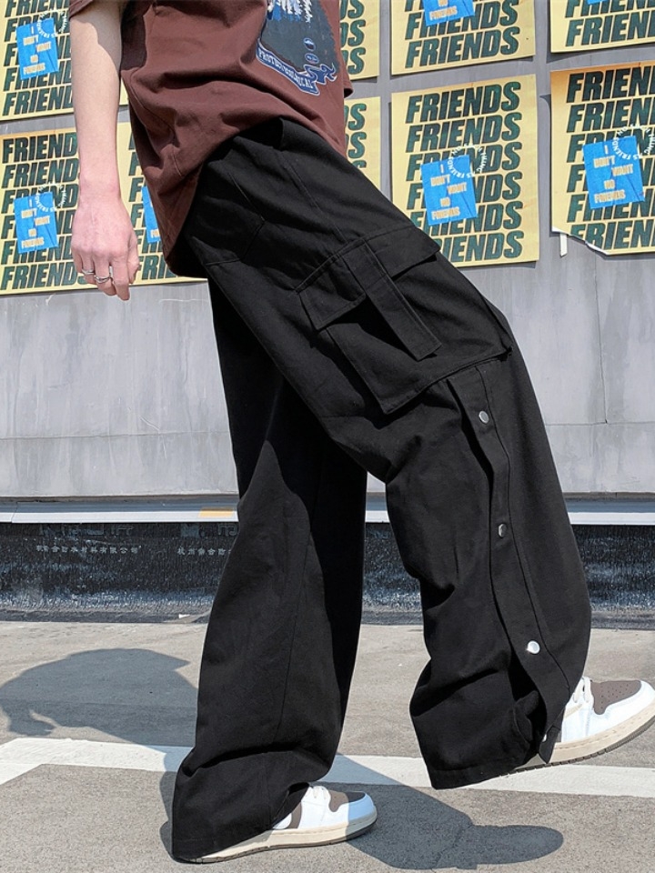 这款工装裤的设计非常的赞,视觉上就给人个性十足的感觉,裤腿褶皱的设计也丰富了层次感,复古百搭,潮男必备。