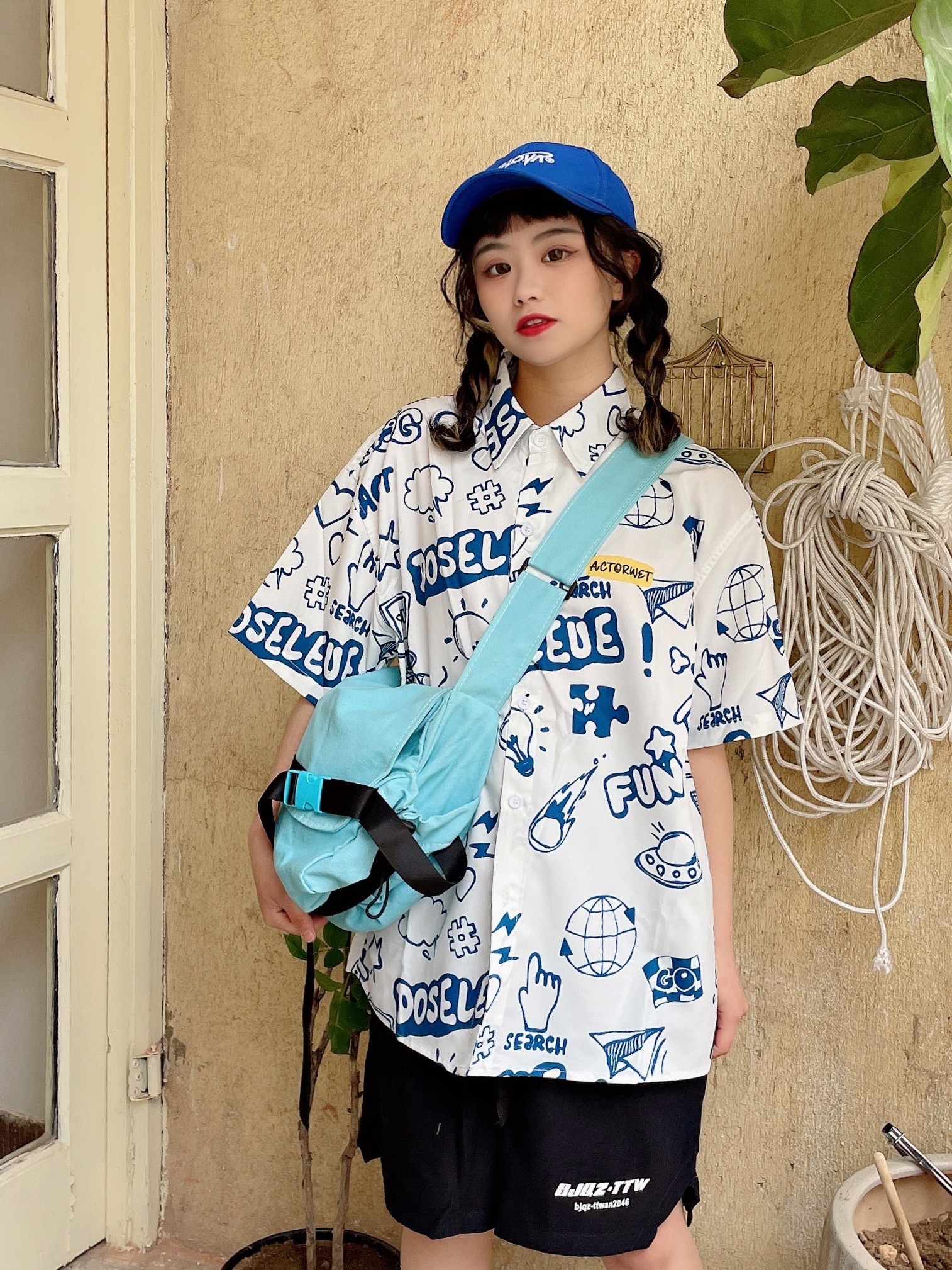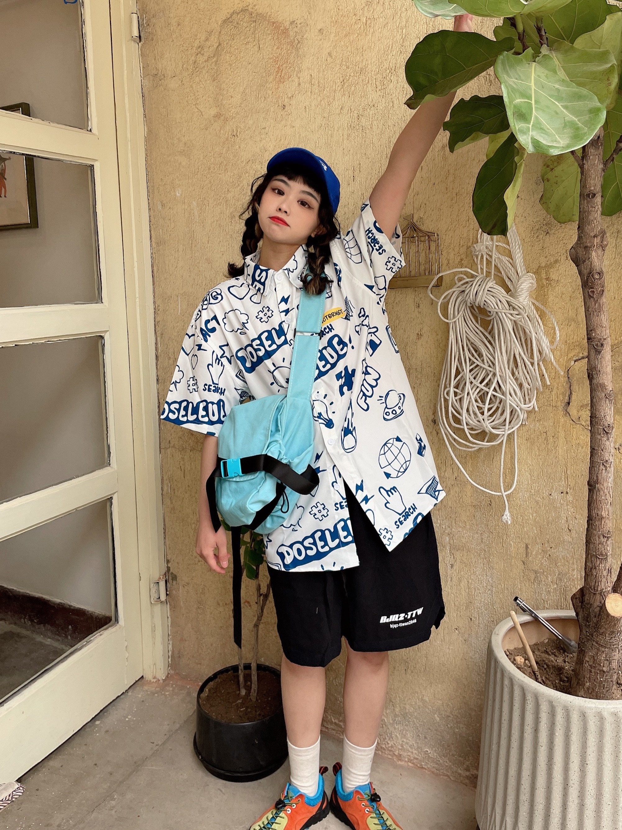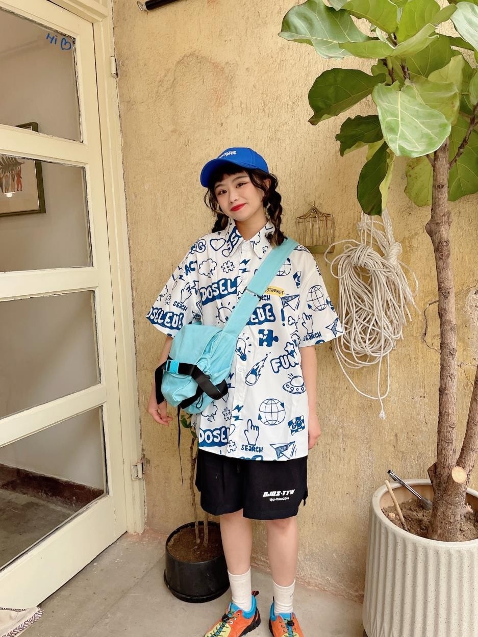 很有设计感的一款衬衫短袖!满满的撞色印花,特别个性别致,满满的青春活力感,我真的特别喜欢。