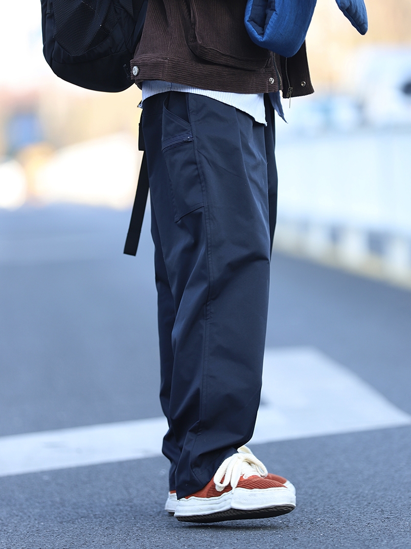 这款宽松直筒版型的工装裤,能够让肢体自由的舒展,结合上松紧抽绳腰头的设计,任何身材都能驾驭。双侧对称的斜插口袋加持,构建出丰富的视觉感,散发出浓郁的美式工装风格。