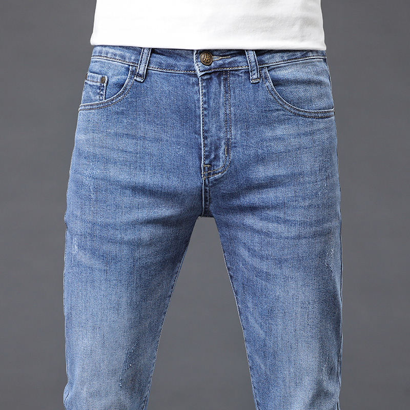 牛仔裤采用优质的牛仔面料,穿着舒适透气,修身的版型设计,上身效果很好,搭配一件T恤,就能轻松穿出时尚潮男范。