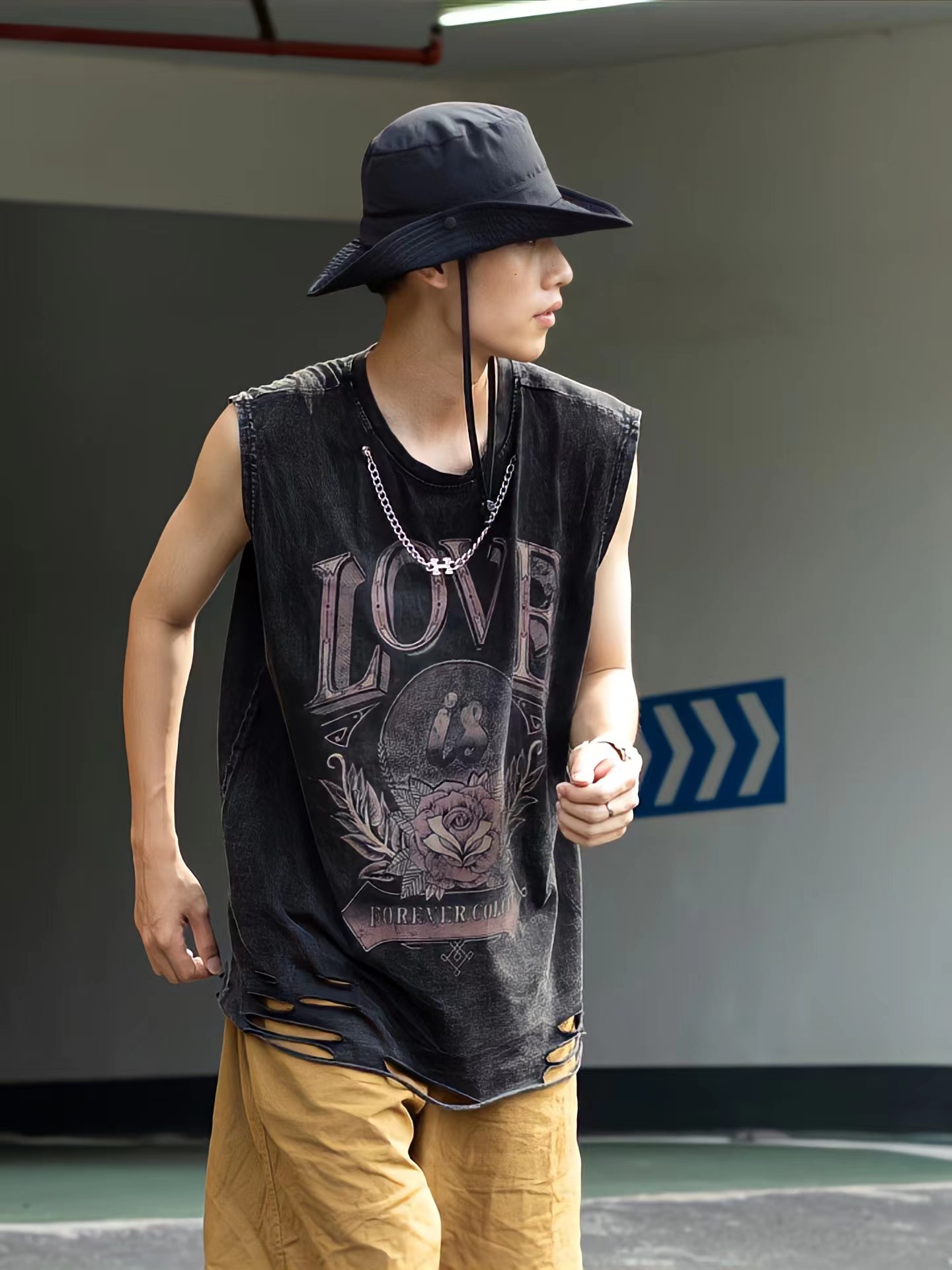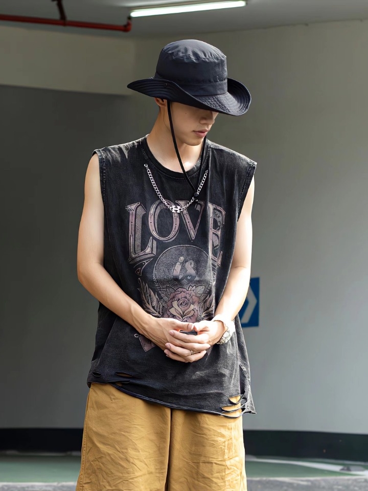 它是无袖款式的,夏日穿着格纹凉爽舒适,而衣摆破洞的设计显得酷感十足,穿起来也显得我更加潮酷帅气。