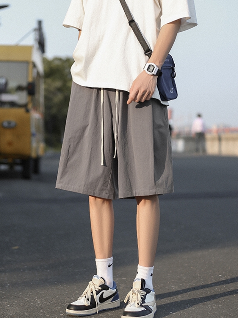 简约的直筒短裤,松紧腰抽绳设计,穿着舒适自在没有束缚感。