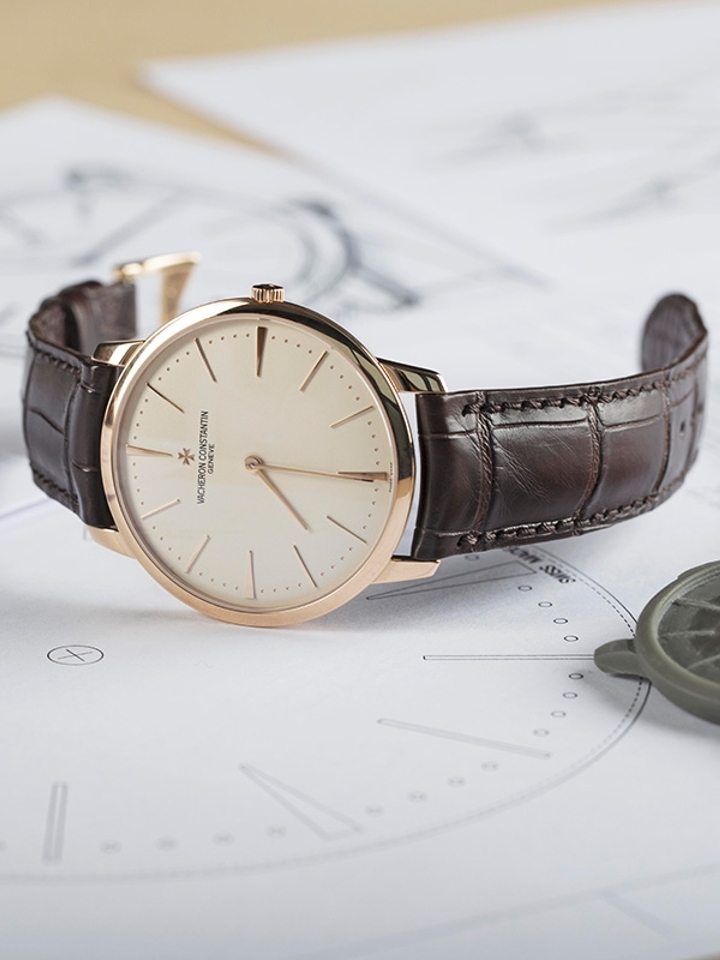 这款男士手表表壳采用了18K 5N粉红金,表壳尺寸40mm,表带采用的是密西西比鳄鱼皮,针扣式表扣设计。