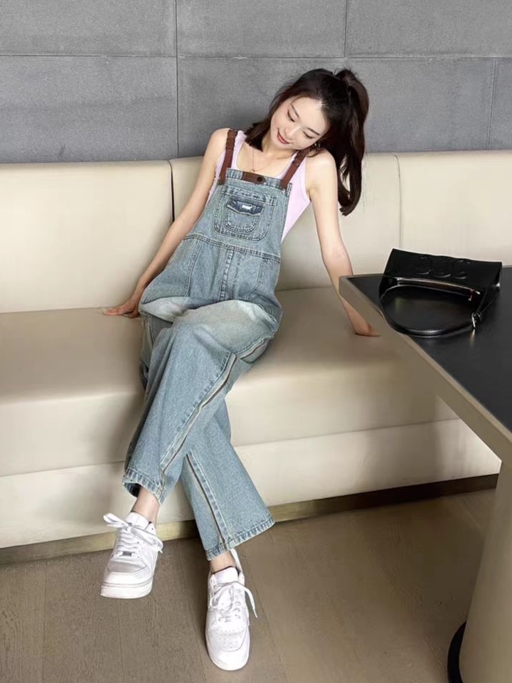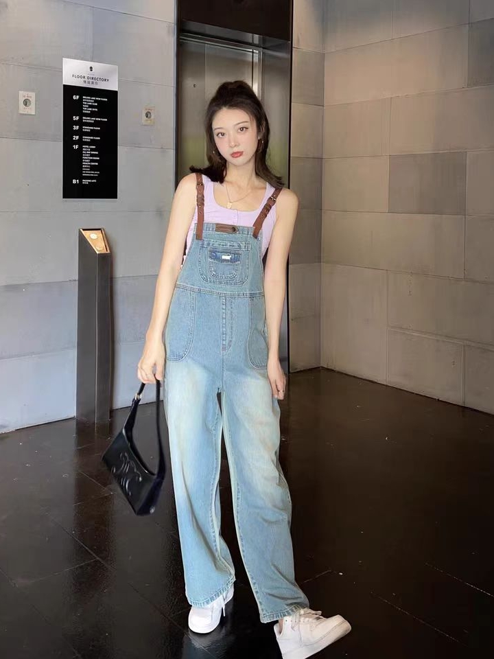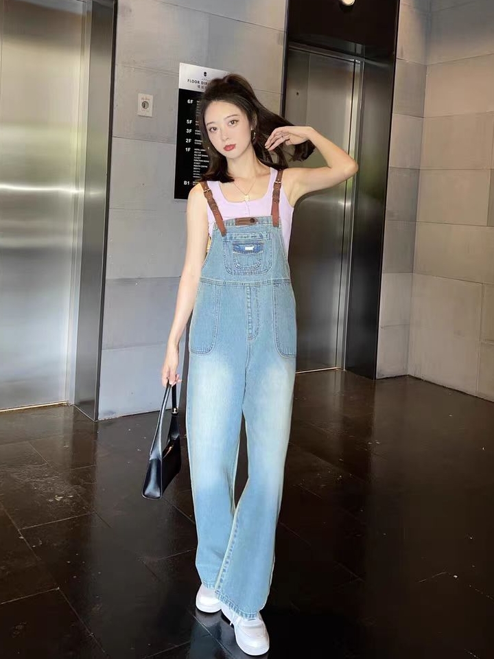 水洗牛仔背带裤,萌萌的款式非常减龄,可爱大方透着萌萌的气息,下身阔腿裤的样式,有效遮挡腿部肉肉,显瘦效果棒棒的。