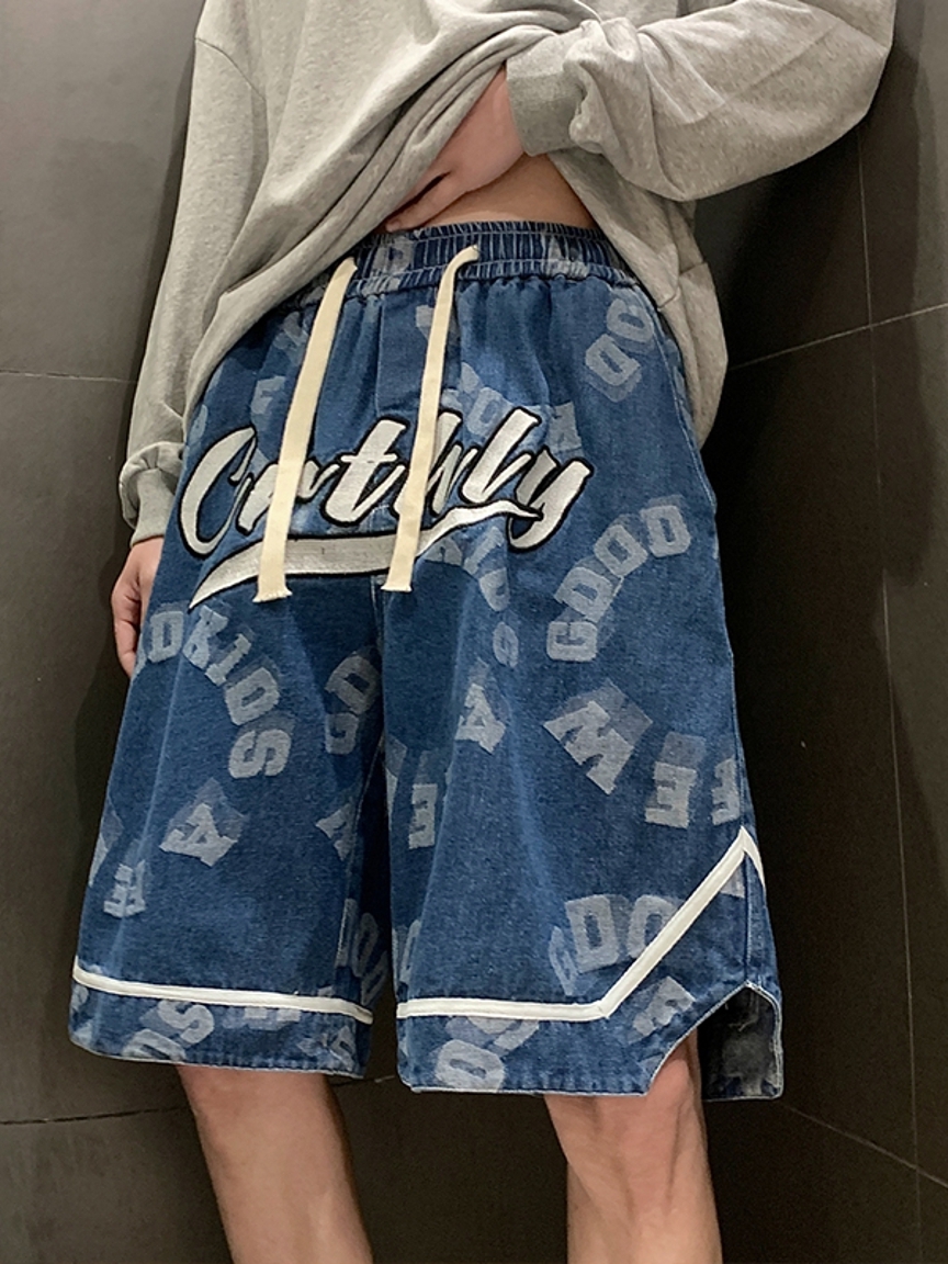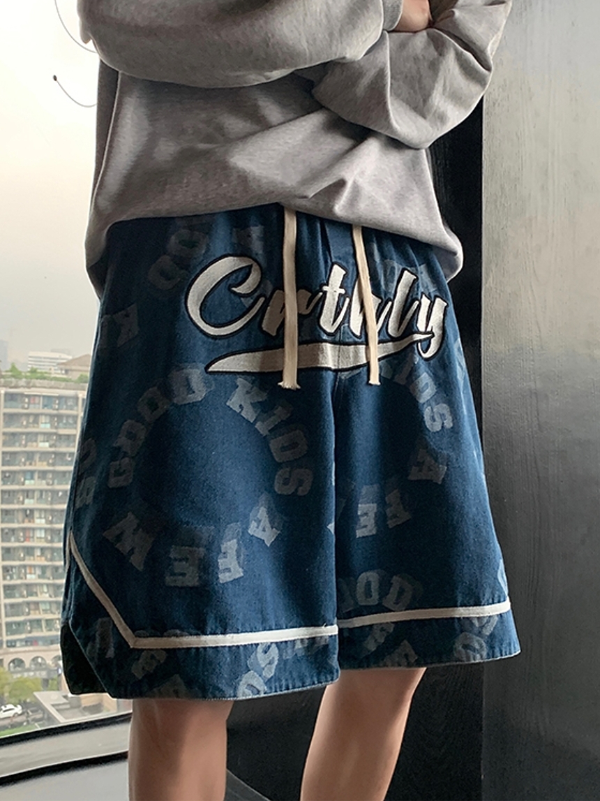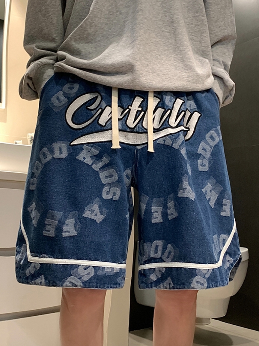 简约百搭的蓝色牛仔短裤,大大的字母点缀宽松的直筒版型,穿着起来舒适自在。