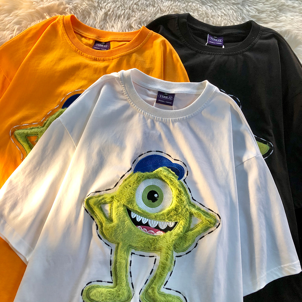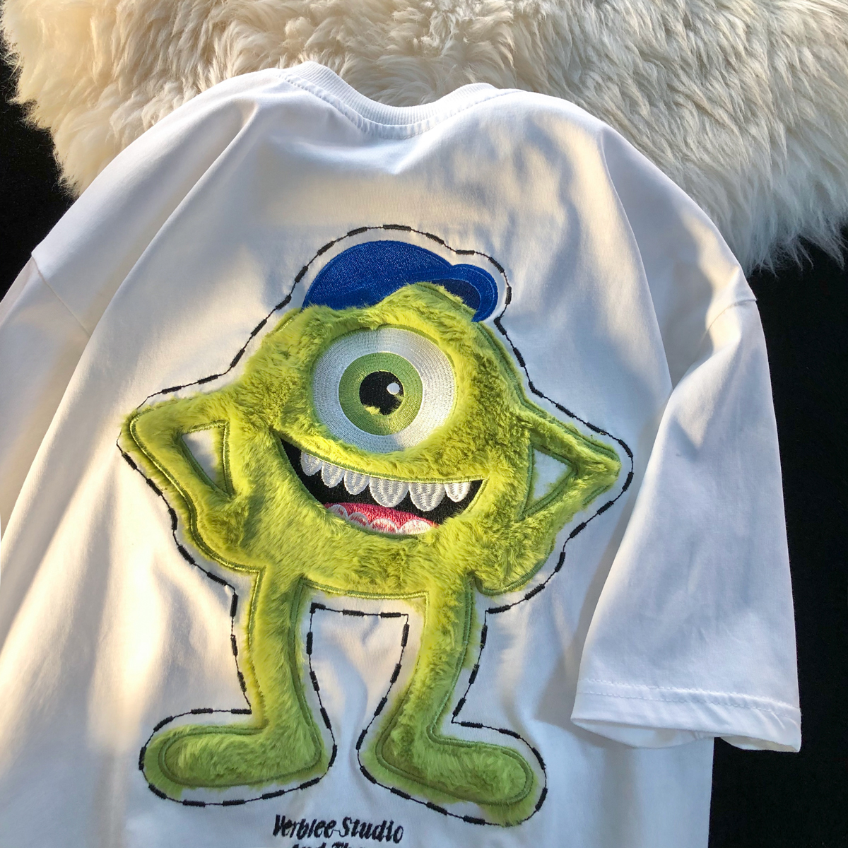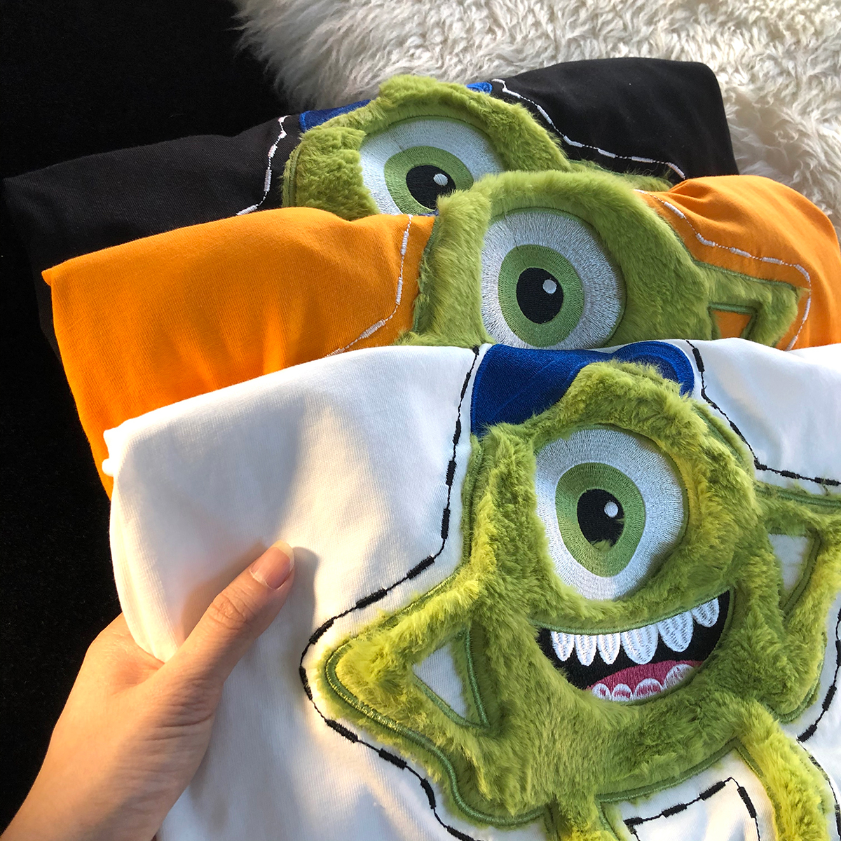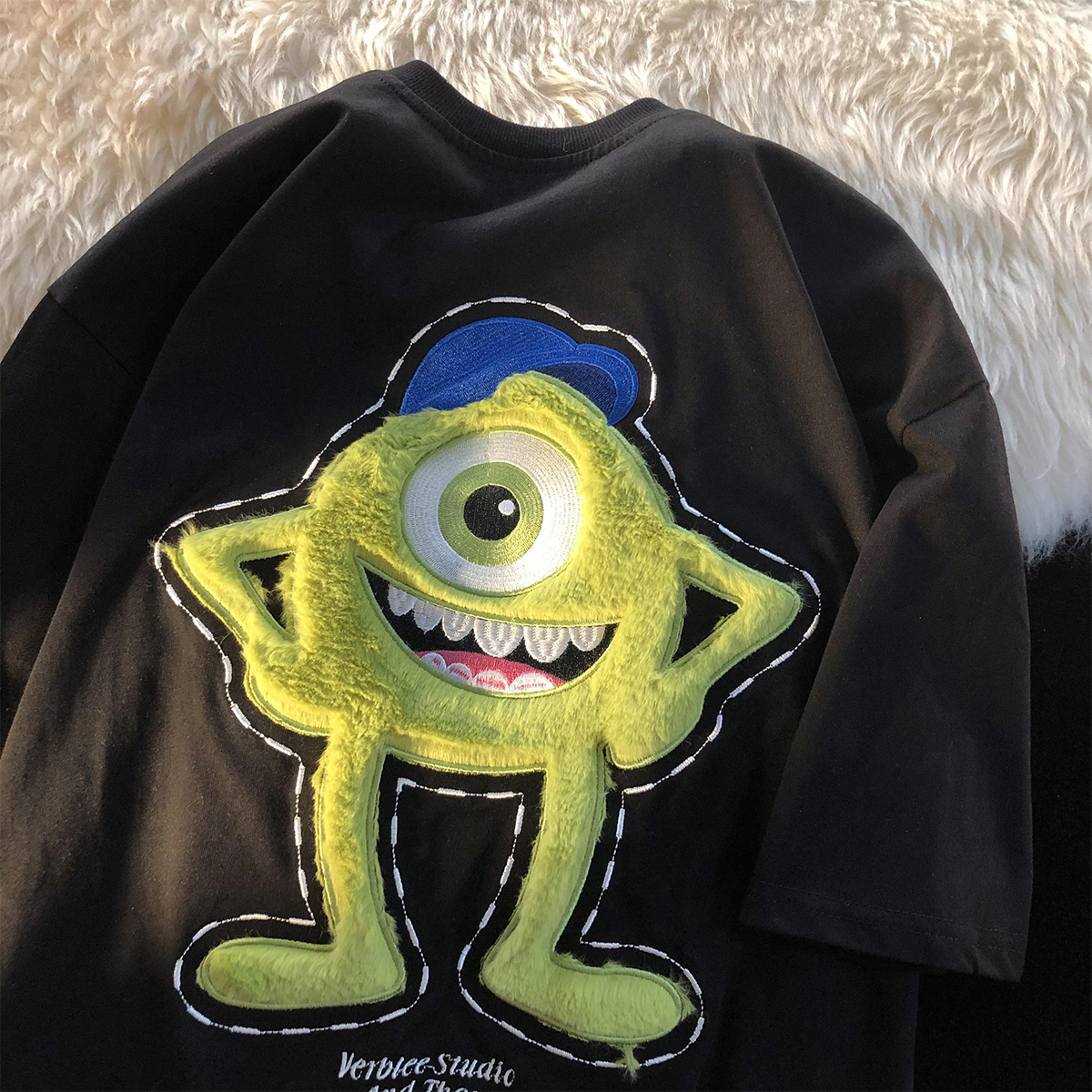 个性印花,彰显潮流时尚,简约的款式,时尚又百搭,卡通印花图案,趣味十足,宽松版型,穿着舒适自在。