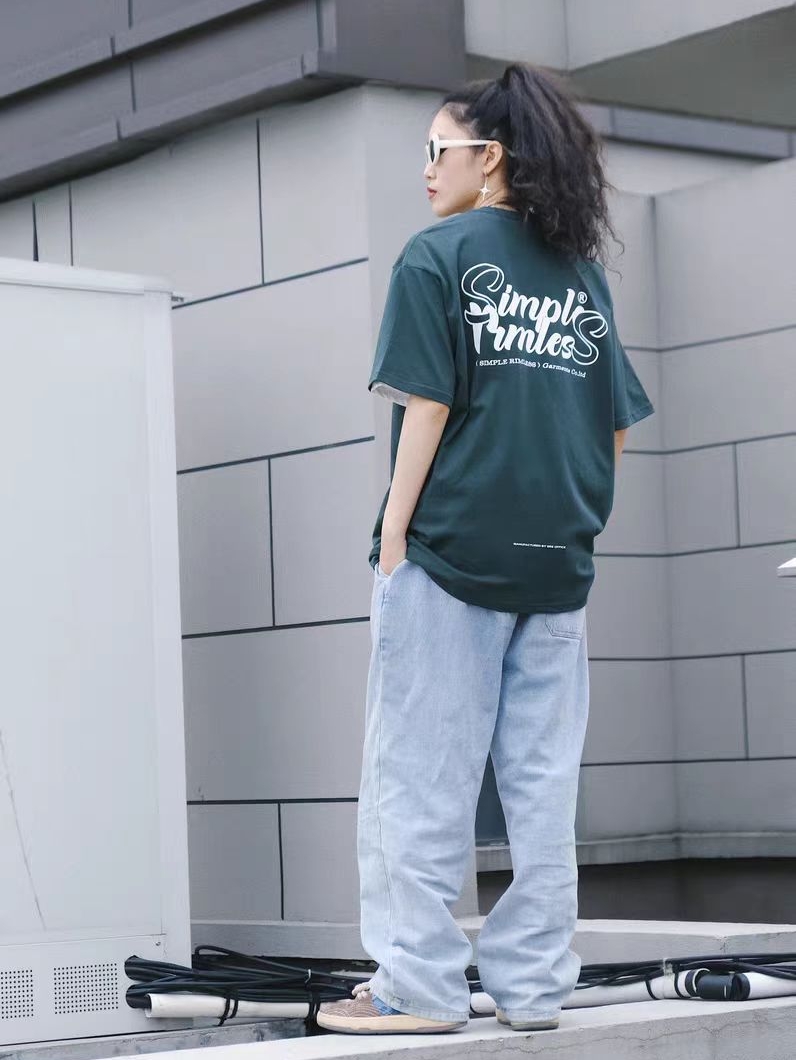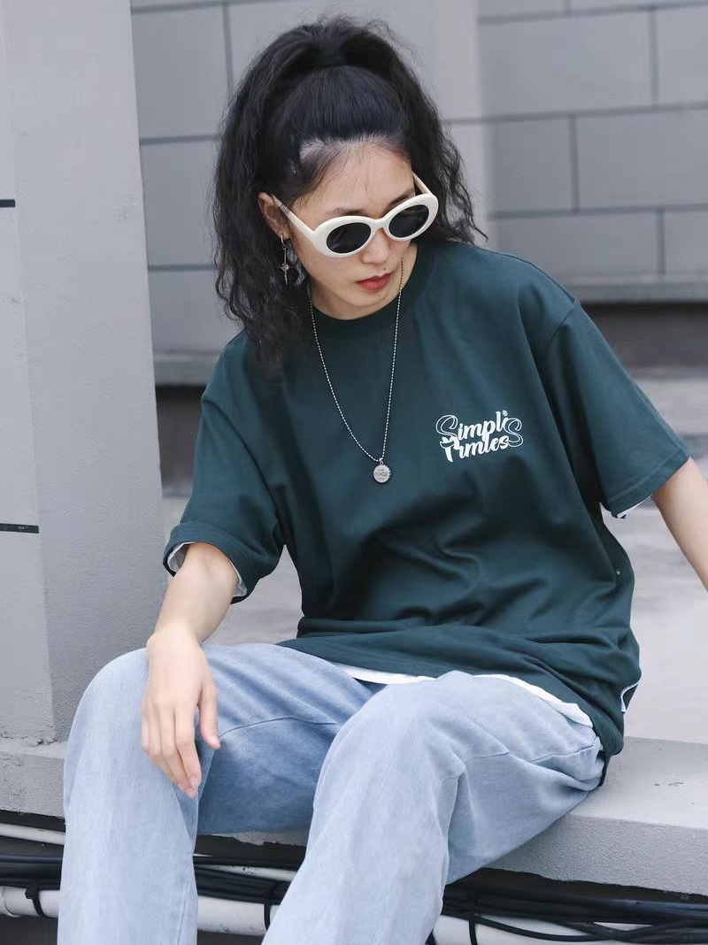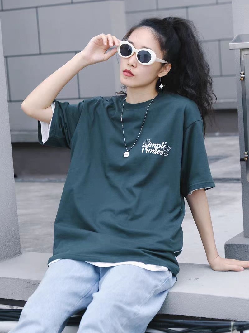 这款t恤是简约的风格,宽松的版型,时尚百搭,胸前的字母印花,很有个性,搭配牛仔裤或者短裤都很好看。