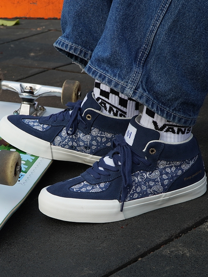 鞋子比我想象中的还要好看,这个海军蓝的颜色很有高级感,搭配腰果花的印花图案,特别有潮范儿,爱了爱了。