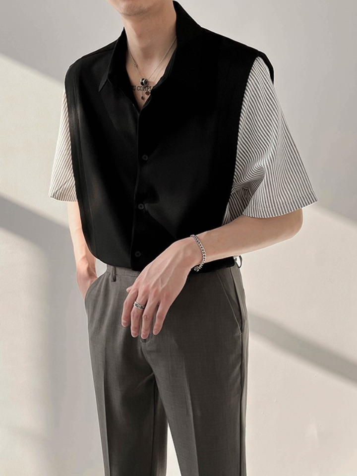 假两件设计,是当下流行的趋势,衬衫的v领设计,宽宽松松的很遮肉哦。