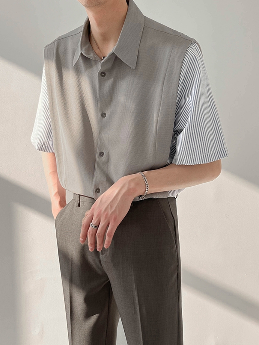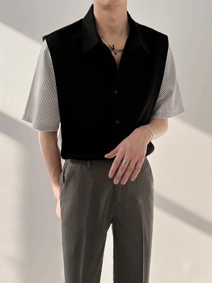 简约设计的一款衬衣,其纯调的色彩穿插,下摆微微的蓬起,为整体的衣身增添了一份俏皮感。
