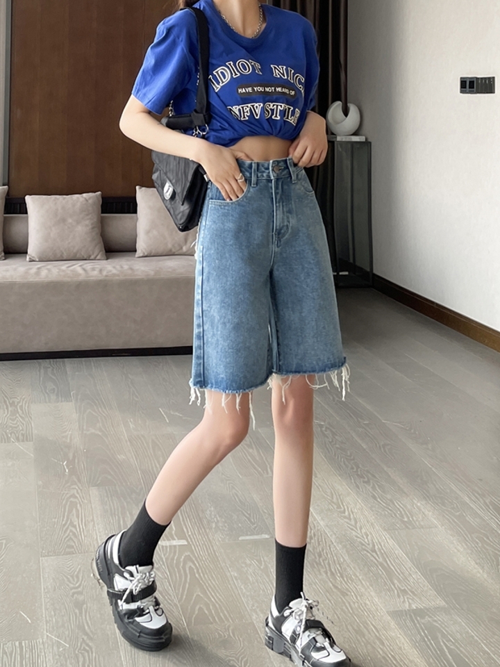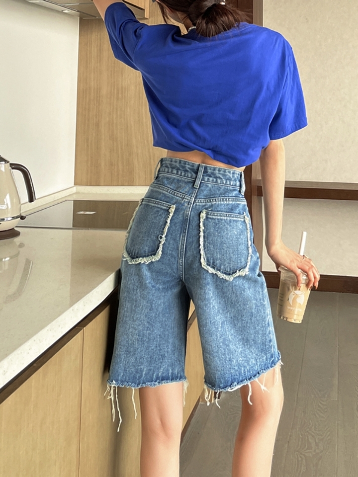 很时尚好穿的牛仔短裤,选用优质的面料,柔软细腻,亲肤透气,拉链门襟,拉合顺滑不卡齿,使穿脱更加的方便。