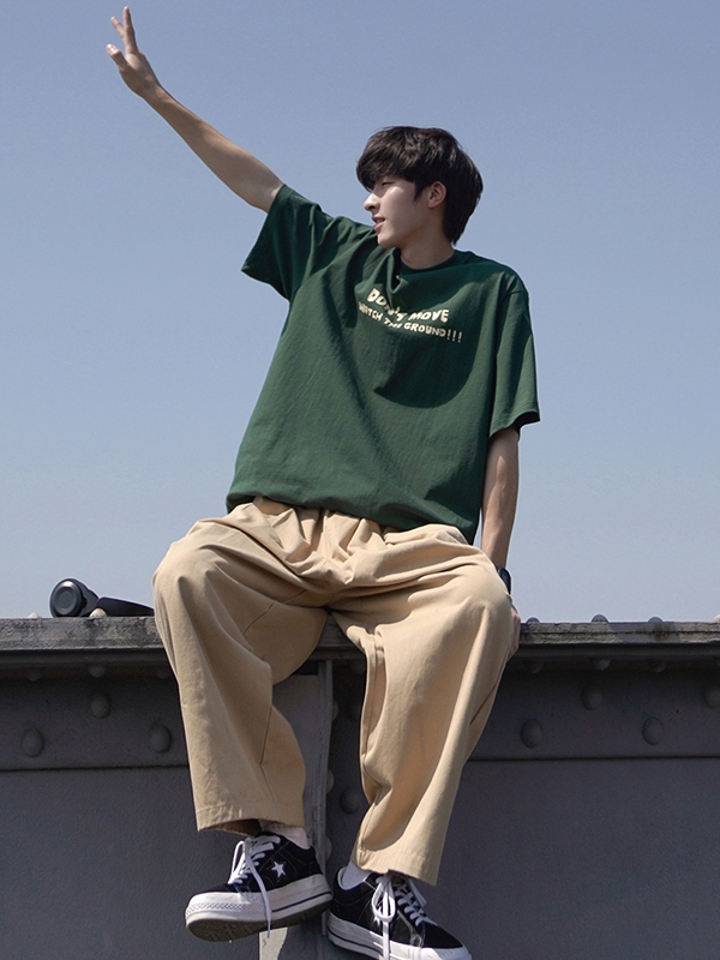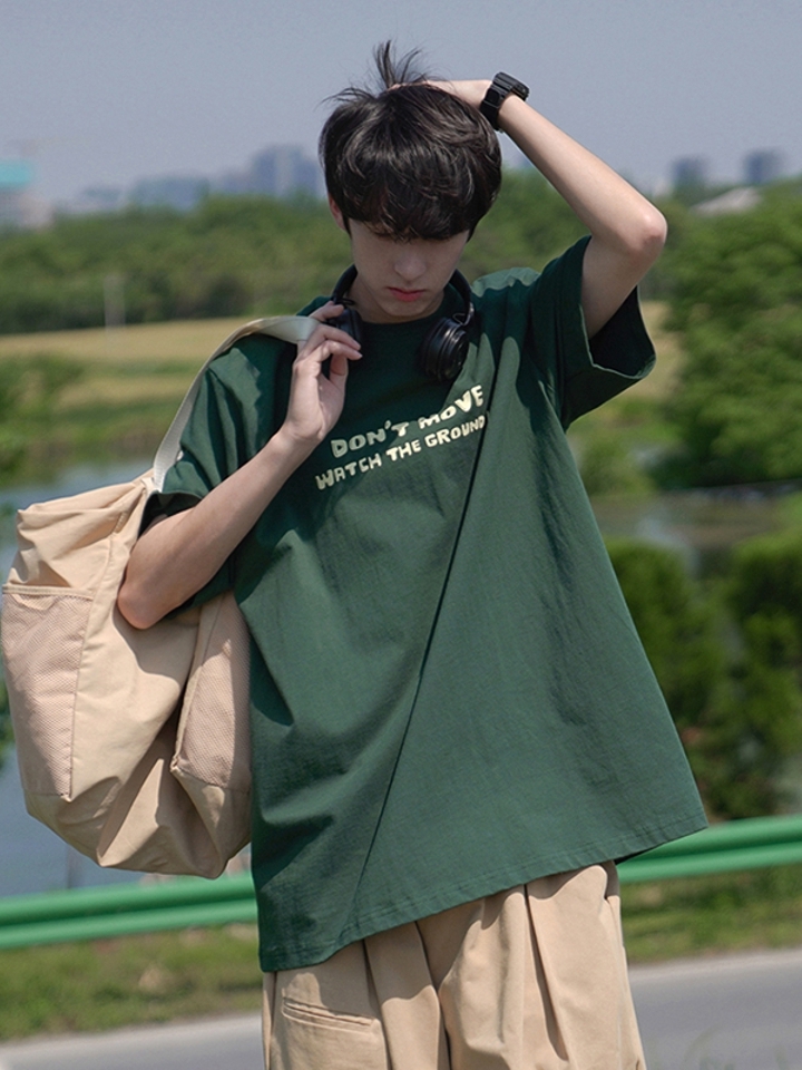 日系风格的一款短袖T恤,经典的圆领配合宽松的半袖,上身更加有型,同时宽松舒适度高十分的帅气。衣身前幅设计感的字母印花,使得整体更具街头潮流感,活力自然。
