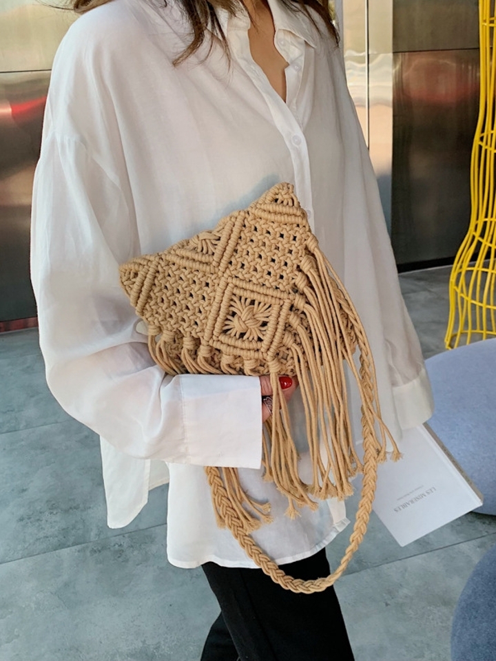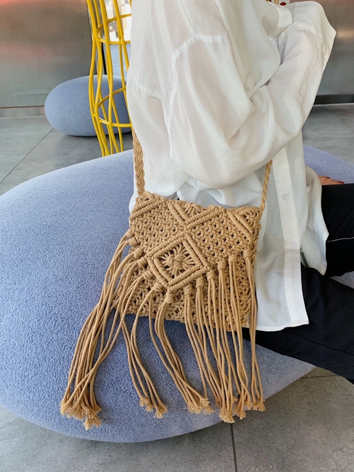经典的小方包设计带有复古的韵味,简约大方的纯色系带有复古韵味,肩带采用编织的设计,充满了浓浓的波西米亚风,带有流苏的装饰,优雅大气很有浪漫的味道。