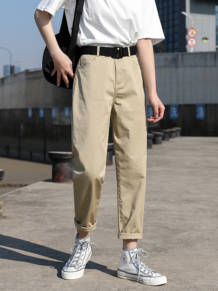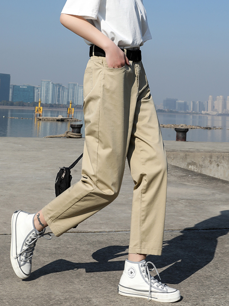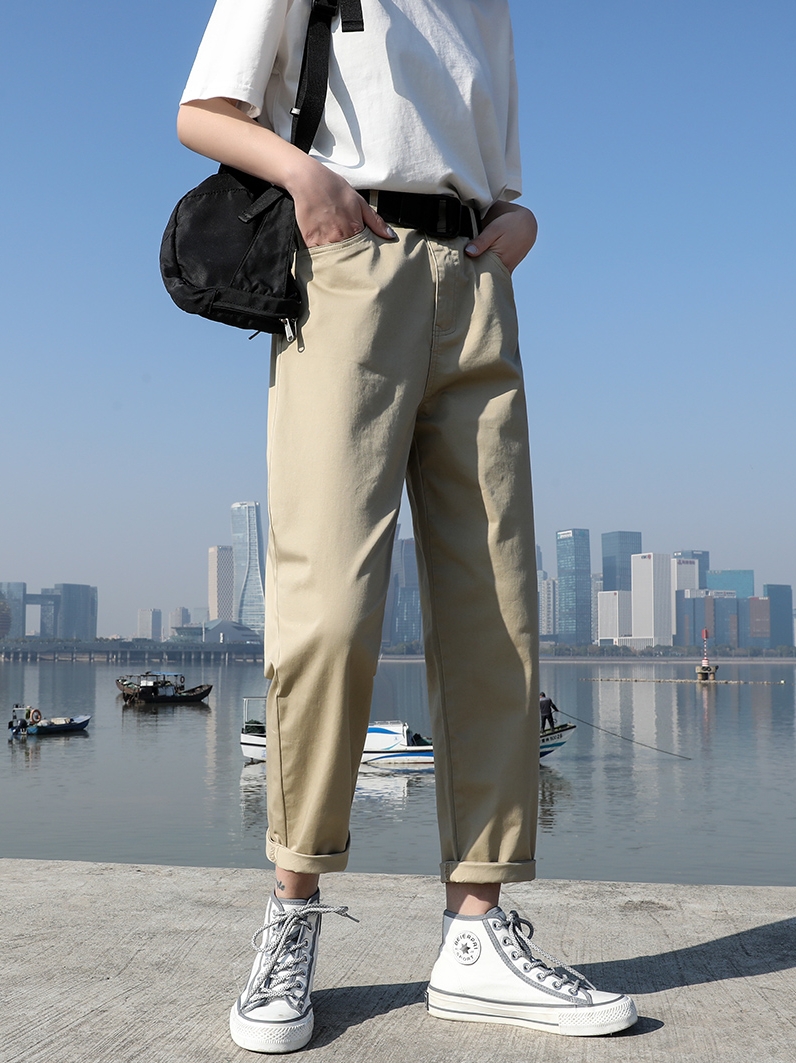 直筒裤型可以修饰腿型,显腿直,略微宽松的版型穿着也很舒适。