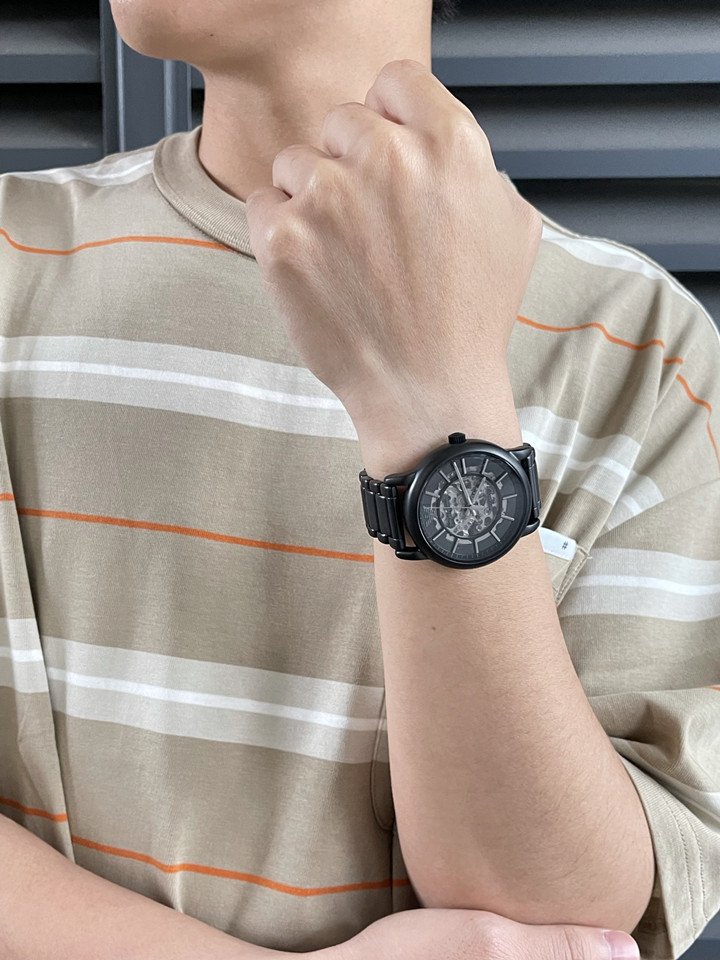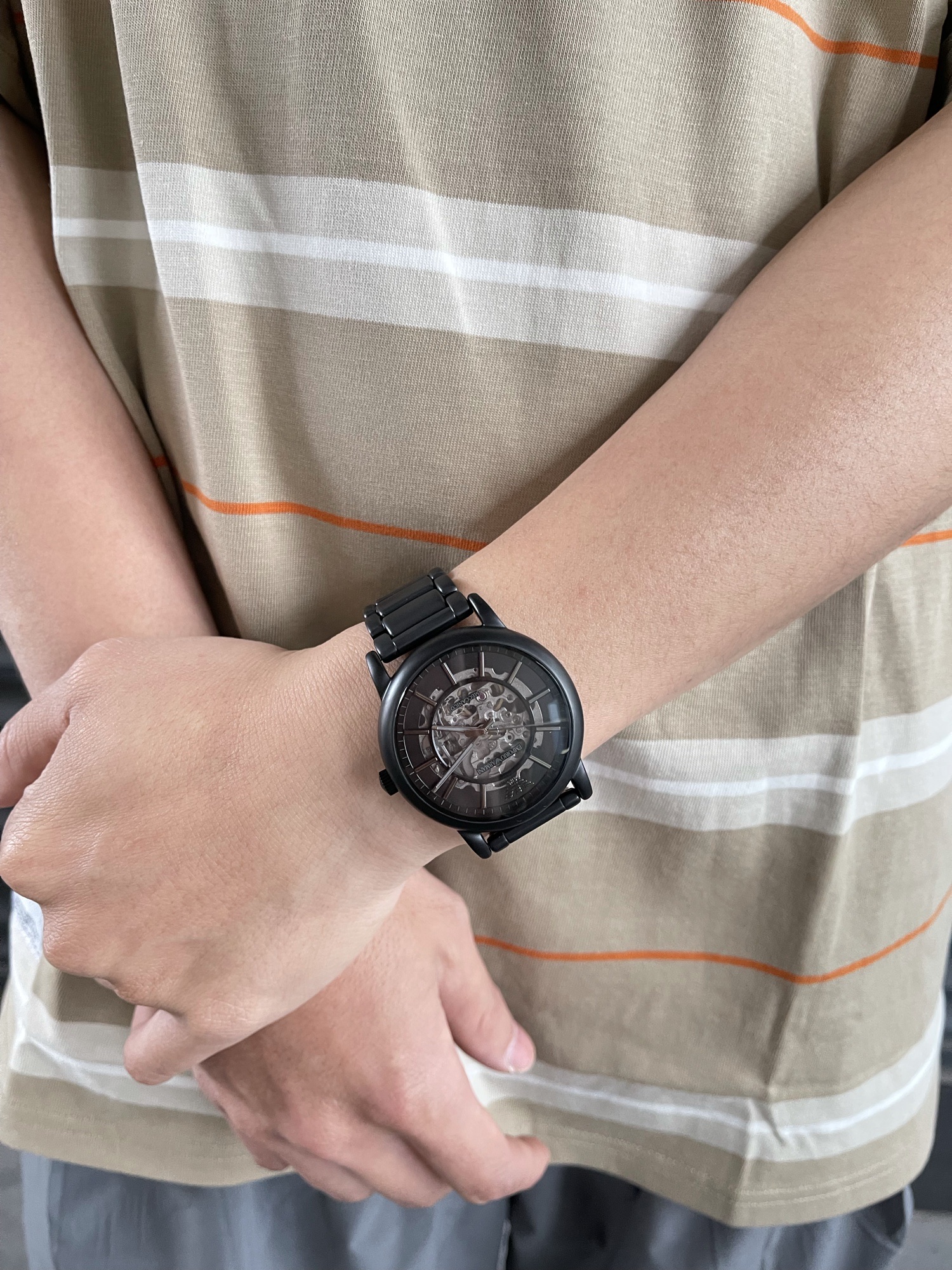 拥有一块百搭的高质量手表太重要了!简单搭配件T恤感觉都很是帅气哈哈,这款机械表我非常喜欢,表盘镂空机械大表盘设计极具现代学美感