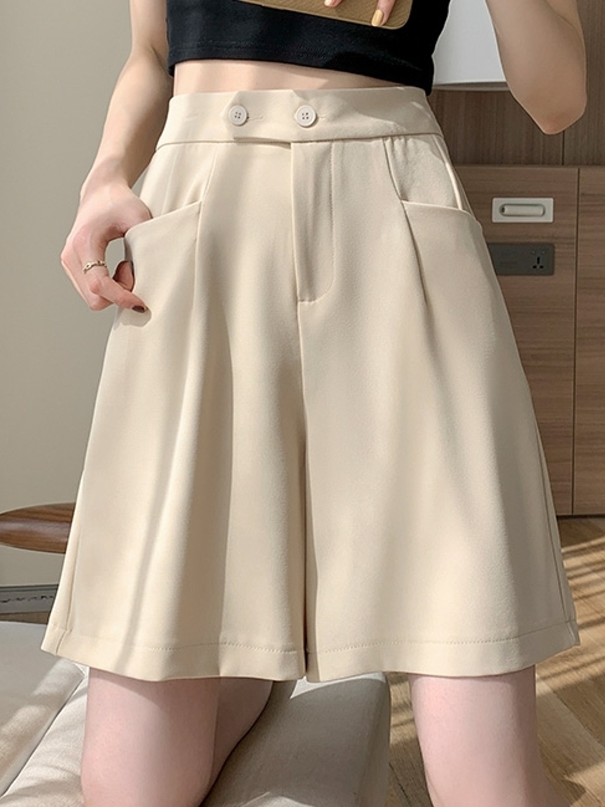 高腰版型的五分裤,拉伸了身材的比例,营造出纤细的小蛮腰,自信地秀出双腿笔直的线条感。