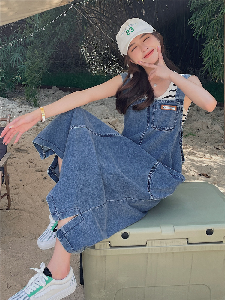 时尚的宽松直筒A字廓形,有很好的包容性,到小腿的长度n可以很好的修饰腿型,藏肉显瘦不在话下n妥妥的就是街头焦点啊!!n这款背带裙很好的勾勒出您唯美的迷人性格
