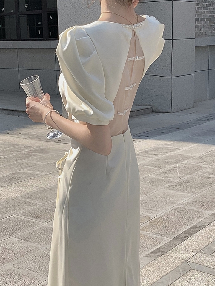 这件别致连衣裙既漂亮又柔软。它的领口是正式的。领口视觉上小巧别致。领口很老气质,别致的袖子剪裁~