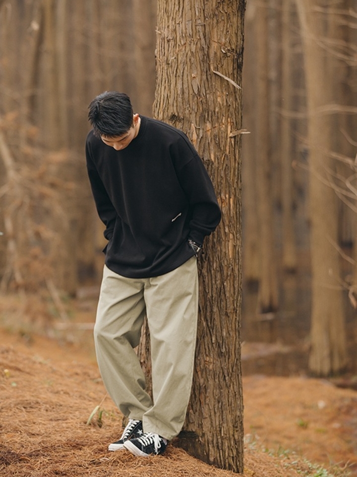 休闲直筒工装裤,它采用纯色的设计,没有过多的装饰,潮流时尚休闲百搭。前片的两个工字褶皱设计,修饰了腿型,也增添了裤子的美感。