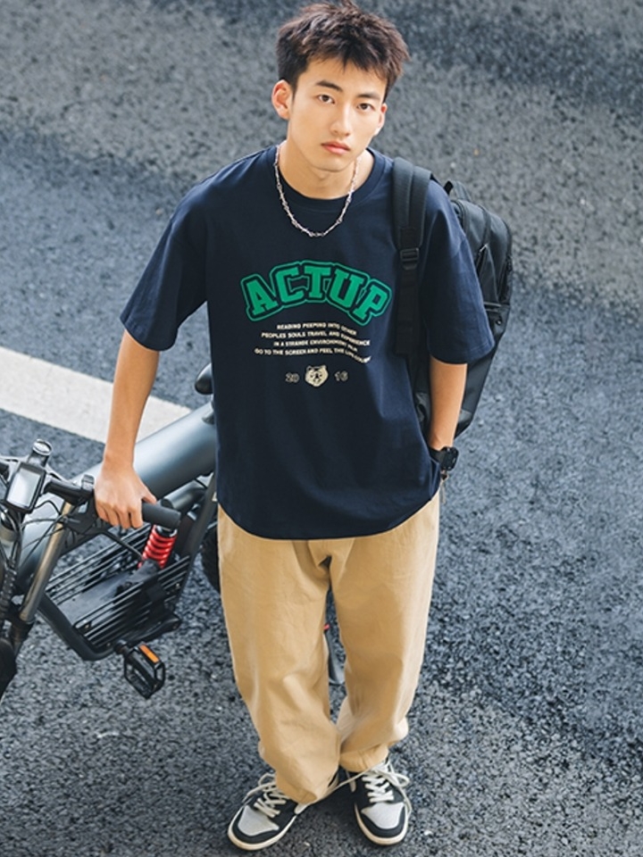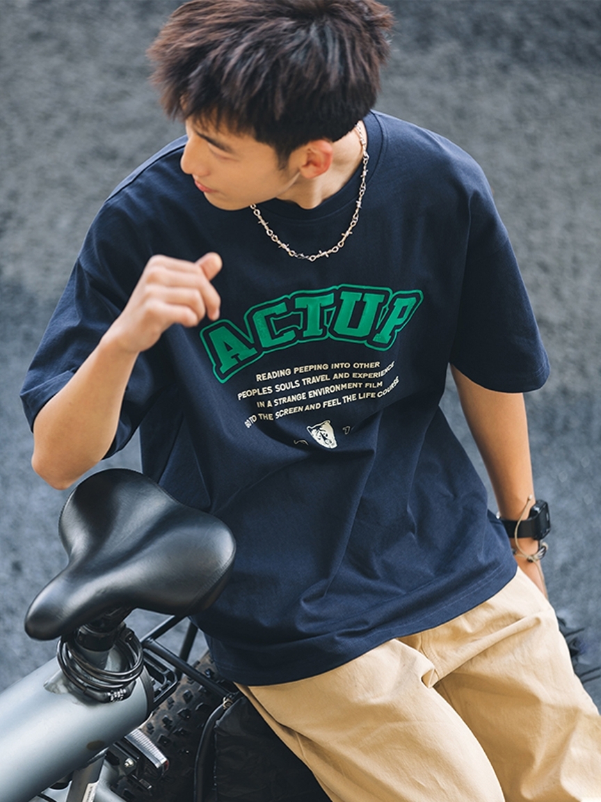 这款t恤是简约的风格,宽松的版型,时尚百搭,胸前的字母印花,很有个性,搭配牛仔裤或者短裤都很好看。