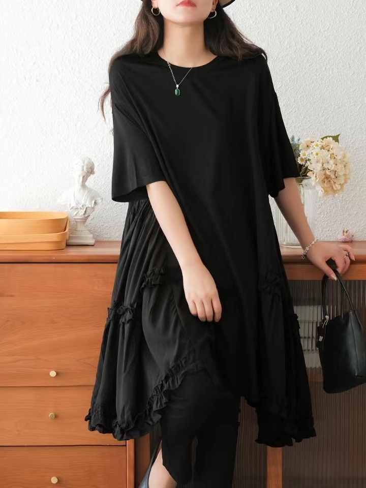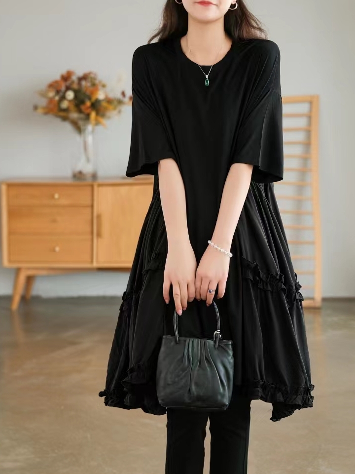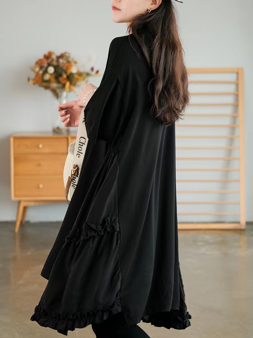 低调沉稳的黑色裙身,穿上很显气质,同时久穿不易过时,裙摆上的木耳花边拼接,带来了满满的甜美少女气息。
