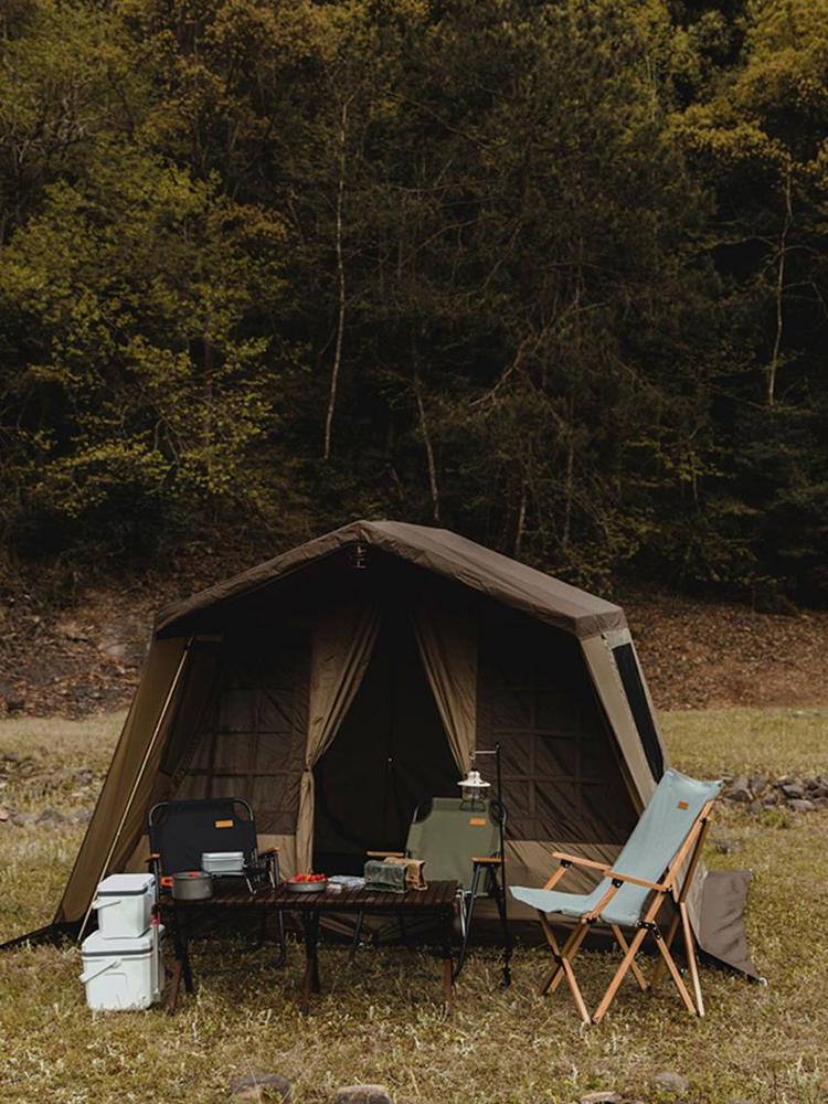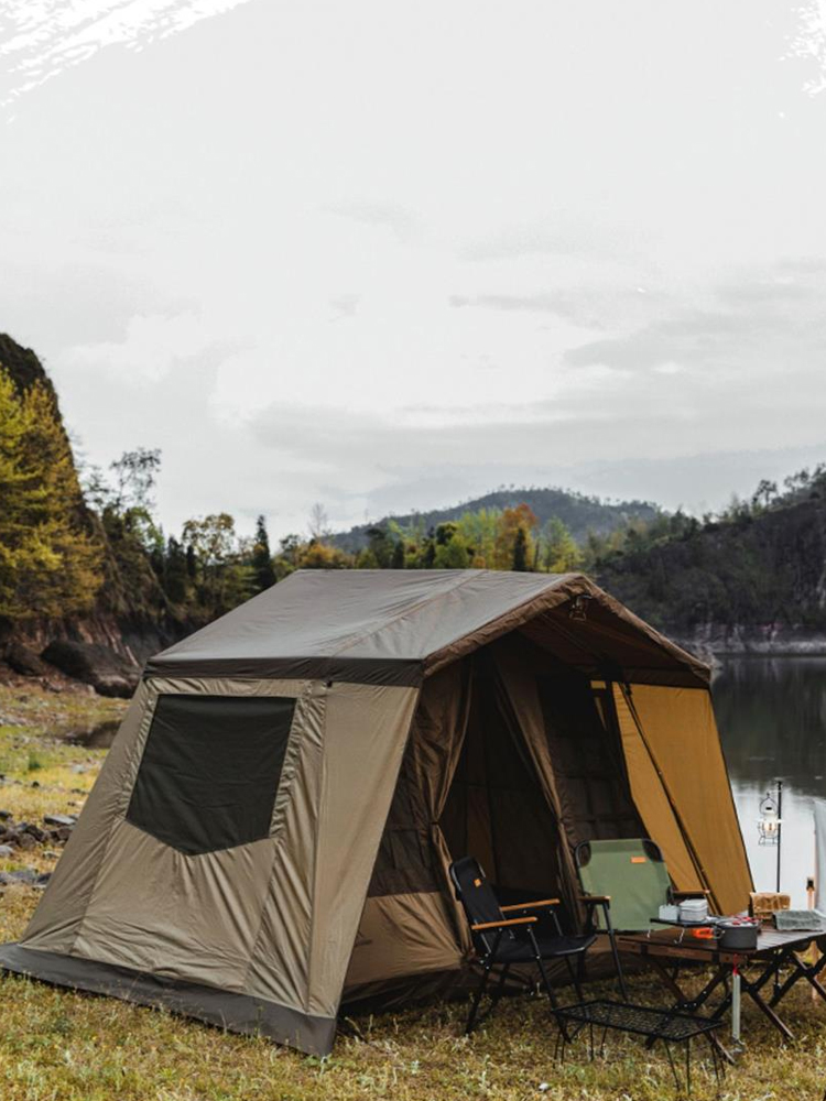棕色的整体色调,给露营带来了满满的ins风格。两个窗户的设计,夜间可以透过它欣赏到户外的美景。