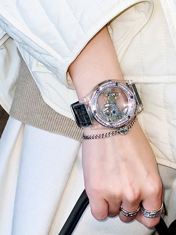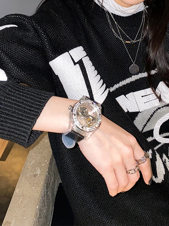 手表非常的大气,做工非常的好,特别是镶钻很亮,同事都说很漂亮,超级喜欢,真的超级nice的,绝绝子。