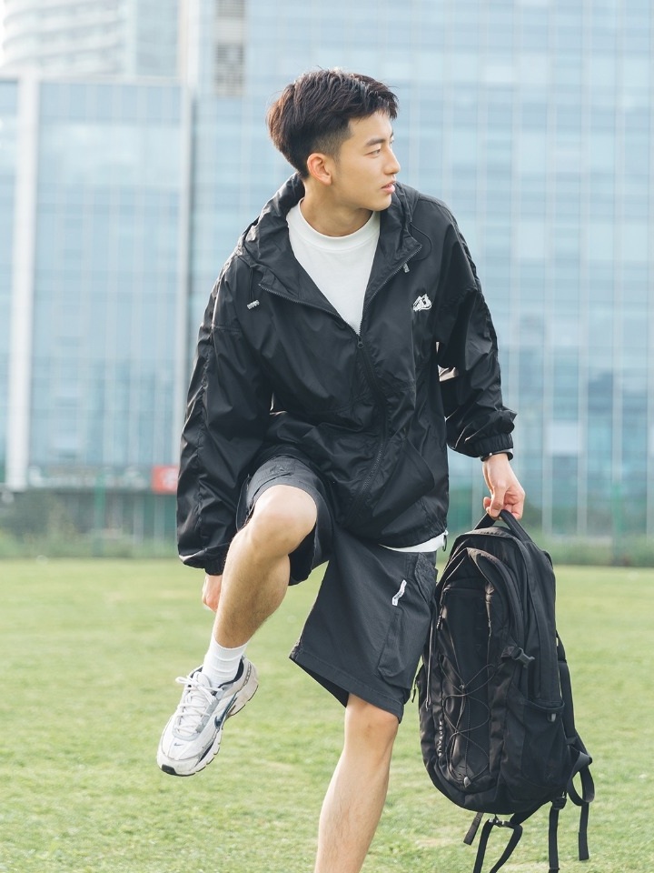 优质的纤维材质亲肤透气,穿着防风防水,可以很好地呵护健康。运动感十足的版型设计,内搭短袖,下搭短裤会很不错。