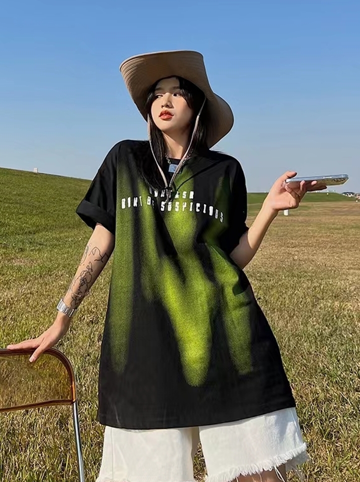 宽松的简单T恤一点也不挑人,圆领实用而且时尚,胸前的喷绘设计让整件衣服看起来潮流十分显好,夏日搭配短裤时髦感爆棚。