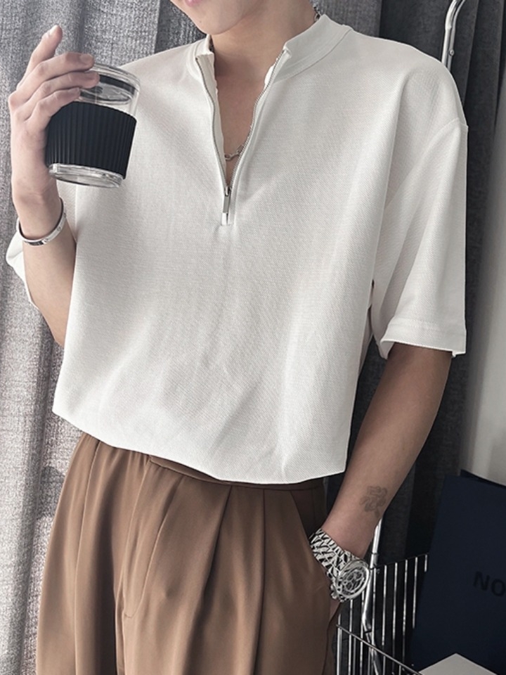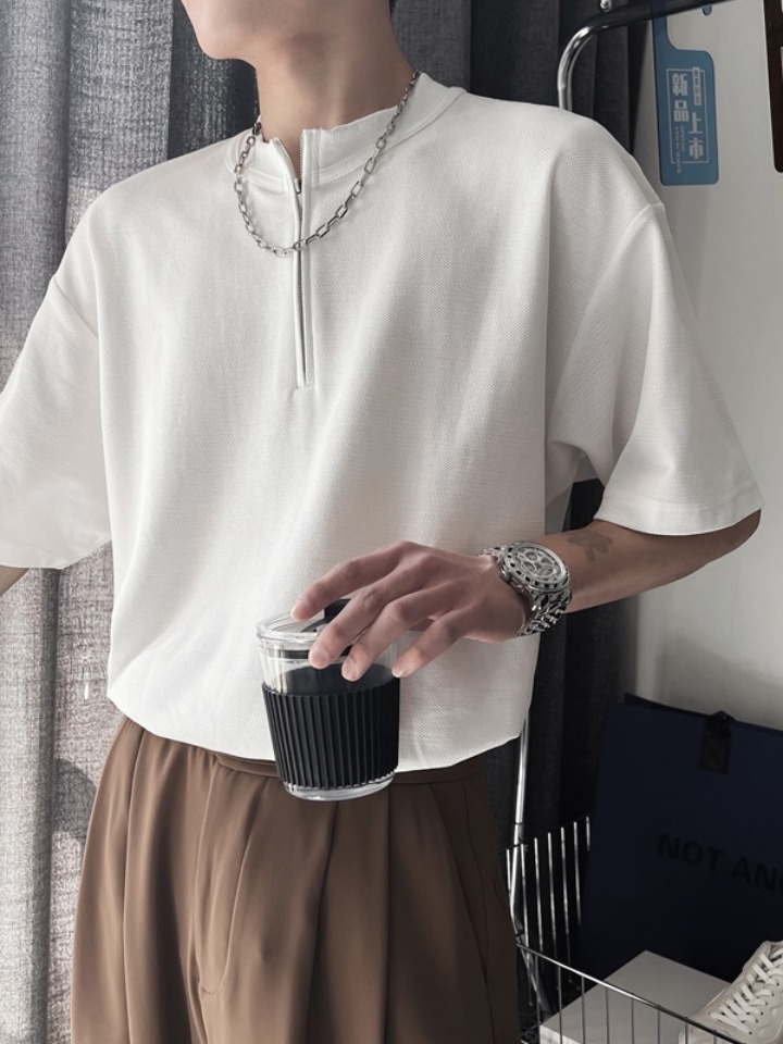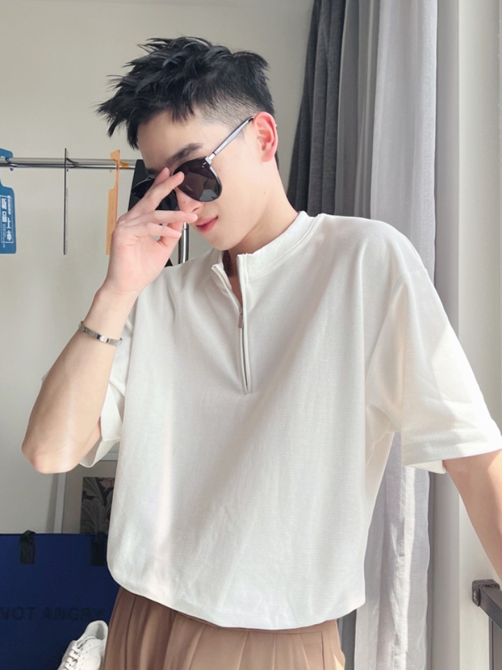 polo领设计简约,立体裁剪宽松版型,配以落肩袖随性休闲。纯色版面十分百搭。