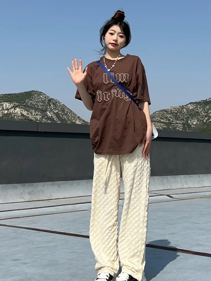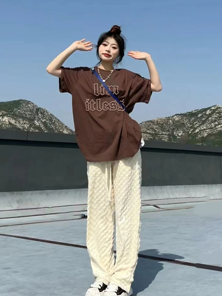 柔软舒适的质地,轻肤透气,简洁圆领,宽松的基础款式,好穿舒适,个性字母印花图案,随意大气,出街搭配很有范,宽松的版型,微胖MM也很适合,很显瘦。