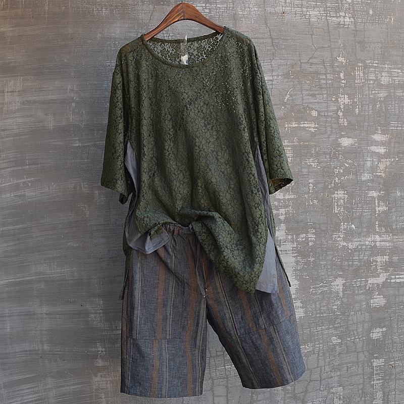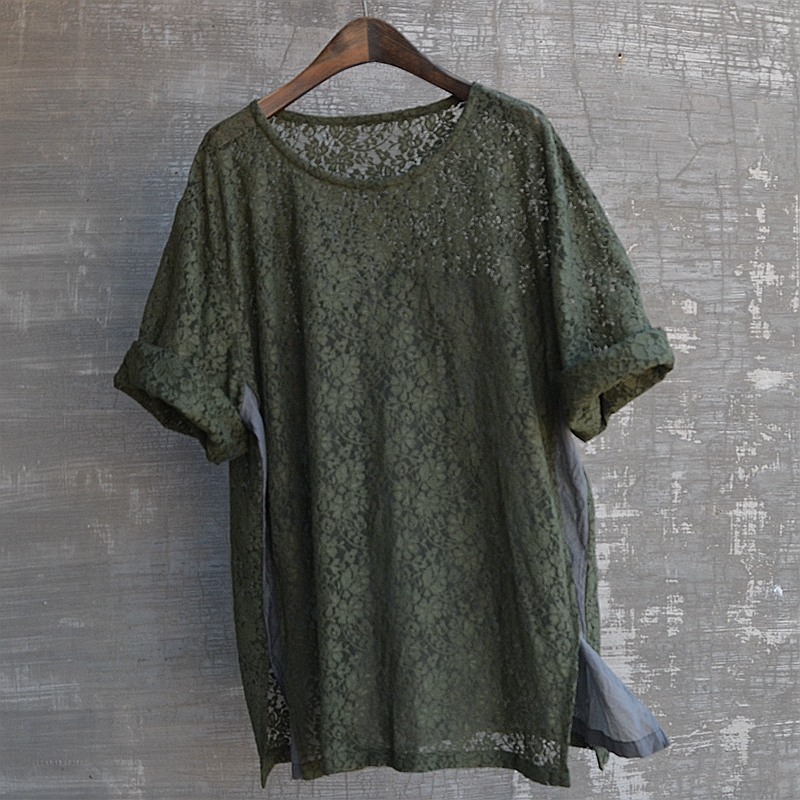 T恤采用了蕾丝面料,手感柔软,穿着舒适,圆领设计,简约大方,胸前的刺绣图案,增添了几分时尚感,宽松的版型,上身舒适自在,休闲百搭。