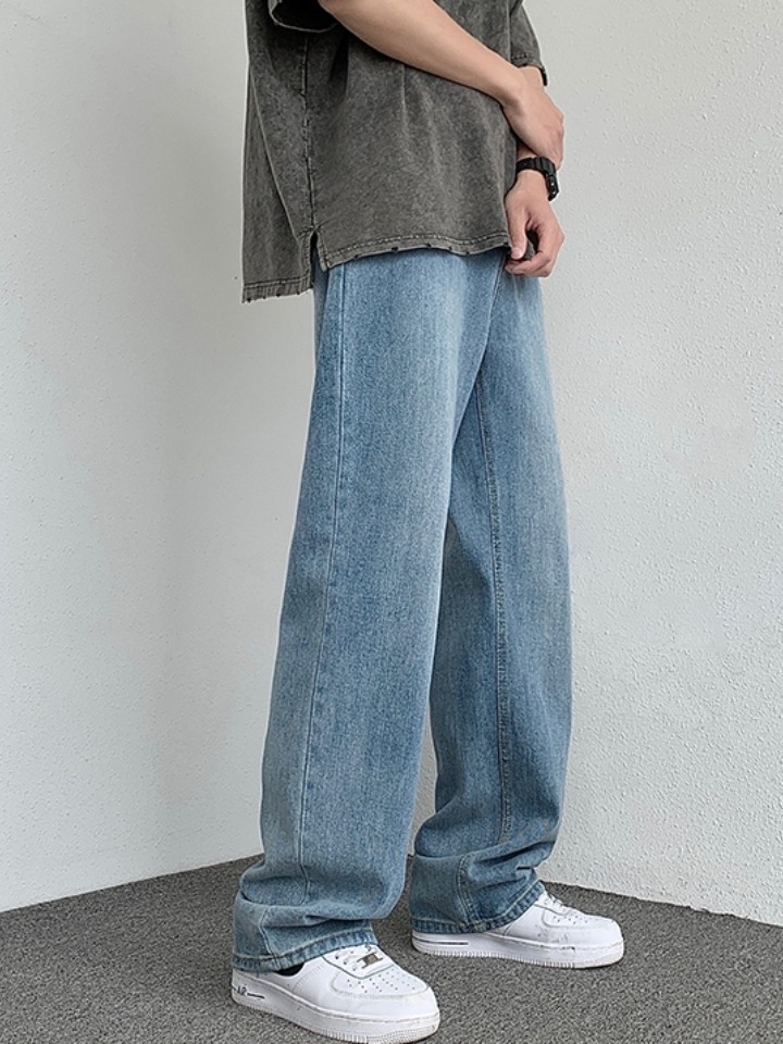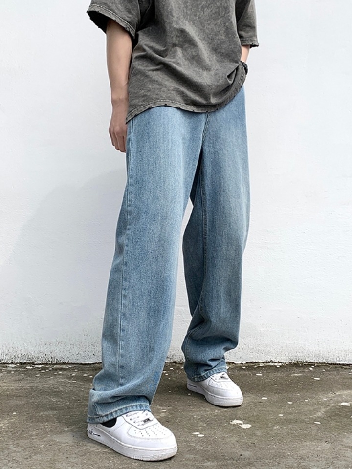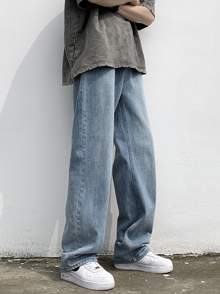 超带感的高街浅蓝牛仔裤,辅以经过水洗工艺打磨的牛仔面料制作,使造型充满复古气息,颇具质感。