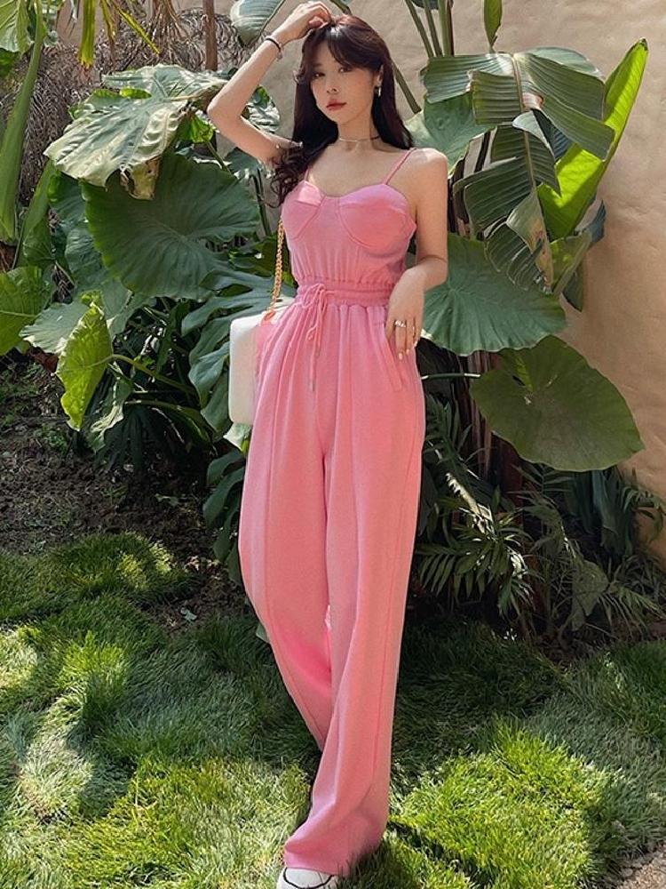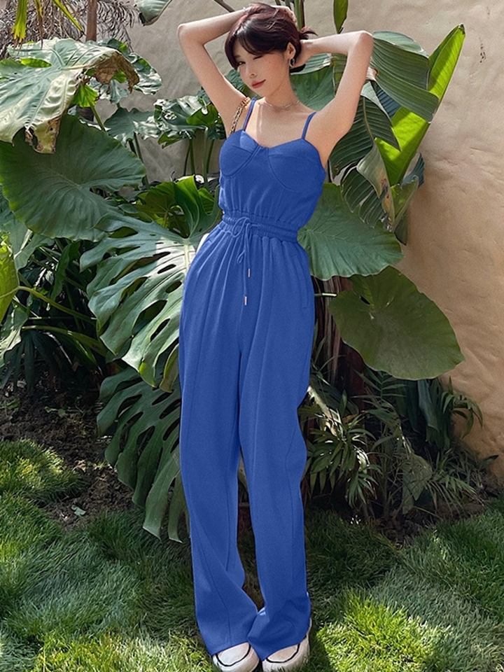 这是一款专为夏季设计的阔腿连体裤。从其清新优雅的配色可以看出,这是一款非常时尚、舒适时尚的产品。连体裤一直是复古时尚的潮流!
