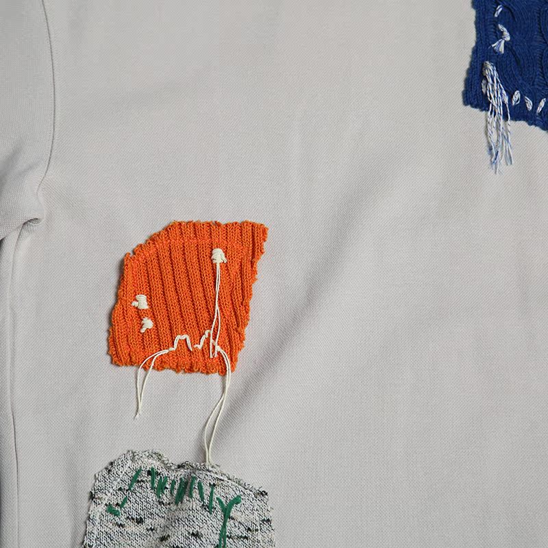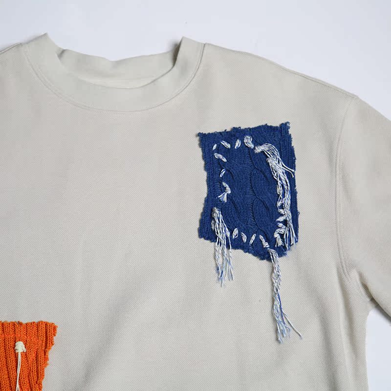 可拆卸,可随意变换造型,宽松版型,穿着舒适自在,补丁设计,彰显个性时尚,经典圆领设计,简约大方。